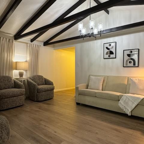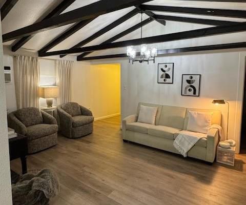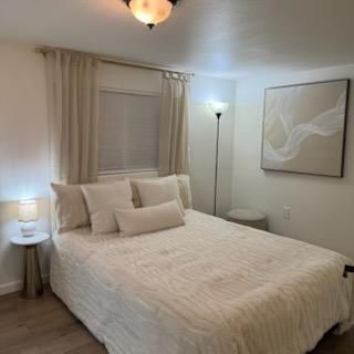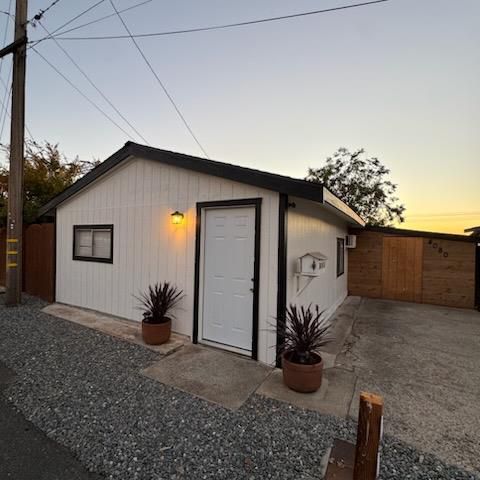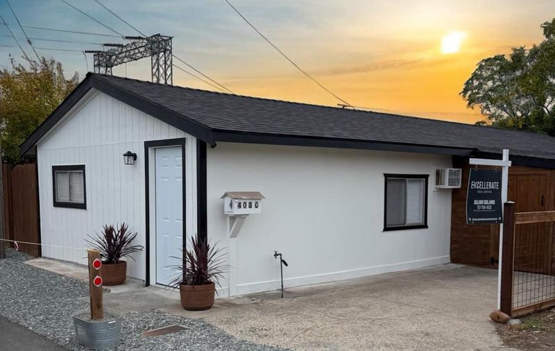 Welcome to this charming bungalow-style cottage featuring 2 bedrooms, 1 bathroom, and a potential 3rd bedroom or home office. Thoughtfully renovated inside and out, this home boasts a new roof, new flooring, new fencing, new siding, new patio, fresh interior and exterior paint. You'll also enjoy updated light fixtures, a modernized kitchen and bathroom, and so much more. Situated on a private corner lot in a peaceful cul-de-sac, the property offers ample front and side parking along with a large attached storage shed for all your extra needs. The neighborhood is quiet and friendly, ideal for relaxing or entertaining. And for a sweet touchthere's a lush, fruit-bearing pomegranate tree right on the property! Conveniently located just minutes from shopping and centrally positioned for easy access to everything.