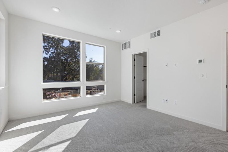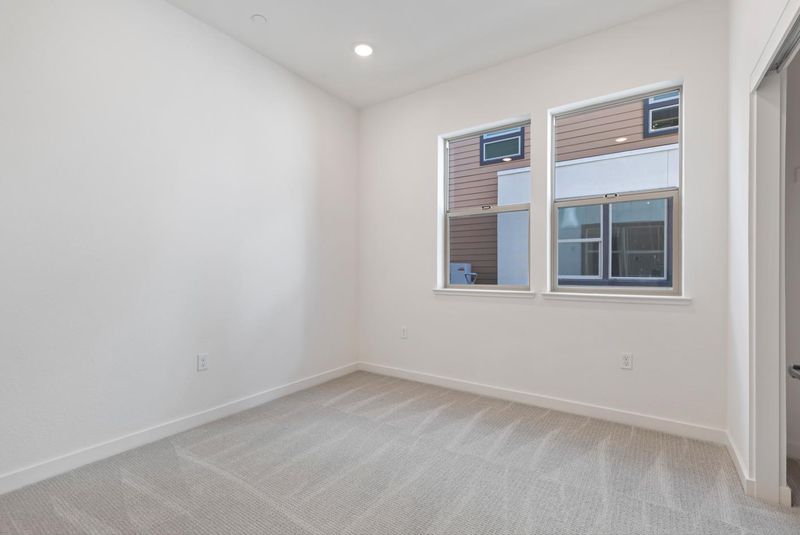 Discover modern comfort and thoughtful design in this newly built Plan 5 townhome-style condominium at Lotus at UrbanOak in South San Jose. This two-story home offers approximately 1,690 square feet with 3 bedrooms and 3 full baths, including a convenient first-floor bedroom and bath ideal for guests, multigenerational living, or flexible work-from-home use. The second floor features an open-concept layout that integrates the kitchen, dining, and living areas, creating an inviting space for daily living and entertaining. The gourmet kitchen includes a gas cooktop, quartz countertops, a spacious island, and modern appliances, with direct access to a covered deck for outdoor enjoyment. The well-appointed Primary Suite provides a walk-in closet and a private bath with dual sinks and a stall shower. Additional features include multi-zone cooling, energy-efficient construction with solar power, a 2-car side-by-side garage, and interior laundry hookups. Community amenities at UrbanOak include a barbecue area, exercise course, playground, dog run, and low-maintenance landscaping. Built by Tri Pointe Homes, this residence offers contemporary living in a location convenient to Silicon Valley employment centers, dining, recreation, and transit options.