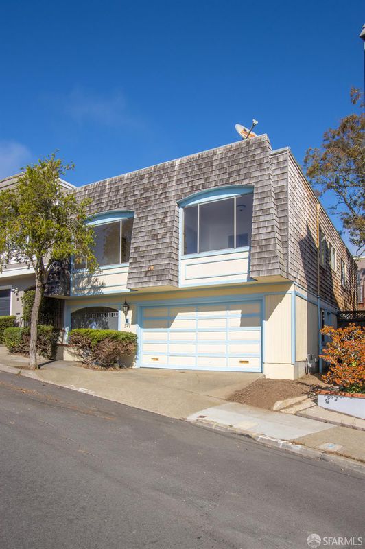Last Open House B4 offers: This mid-century modern 3-bedroom, 2-bath home, detached on three sides, offers investors and owner-occupiers a rare chance to create a stunning, tailored home with lasting value. Featuring southeast exposure with outlook to San Bruno Mountain, multiple skylights, a large lot, newly painted interior, and refinished hardwood floors, it’s a clean slate ready for renovation. The main level includes a spacious, bright living room with fireplace, dining area, and kitchen with breakfast area and pantry. The primary suite features a walk-in closet and opens to the backyard, alongside two additional bedrooms and a full bath. Downstairs, a 2-car garage with interior access provides laundry, storage, and an approximately 500 sq. ft. bonus room perfect for a home office, gym, studio, or maybe an ADU. Set on a quiet street just minutes from Glen Canyon Park, Diamond Heights Shopping, and Noe Valley, this property offers privacy, convenience, and immense potential for buyers with vision to modernize and personalize in one of San Francisco’s most desirable hillside neighborhoods.