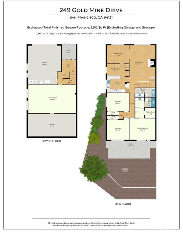 With southeast exposure overlooking San Bruno Mountain, multiple skylights, a large lot, newly painted interiors, and refinished hardwood floors, this home is a bright, blank canvas ready to shine. The main level features a spacious living room with a fireplace, dining area, and kitchen with a breakfast nook and pantry. The primary suite includes a walk-in closet and opens to the backyard, accompanied by two additional bedrooms and a full bath. Downstairs, a 2-car garage with interior access includes laundry, storage, and an approximately 500 sq. ft. bonus roomideal for a home office, gym, studio, or possibly an ADU (buyer to verify all options, including adding as legal living space). Set on a quiet street just minutes from Glen Canyon Park, Diamond Heights Shopping Center, and Noe Valley amenities, this home offers privacy, convenience, and enormous potential. For those ready to pan for opportunity in one of San Francisco's most treasured hillside neighborhoods this is where Gold meets Diamonds.