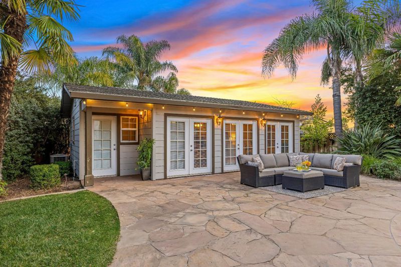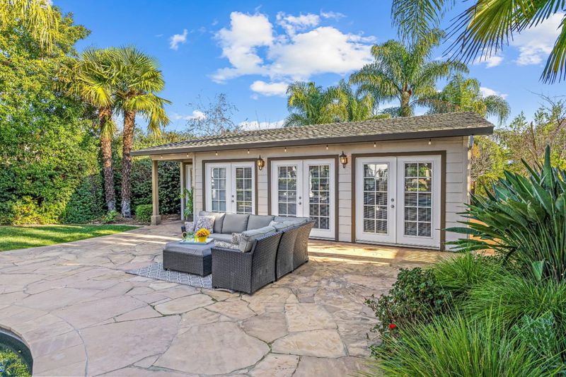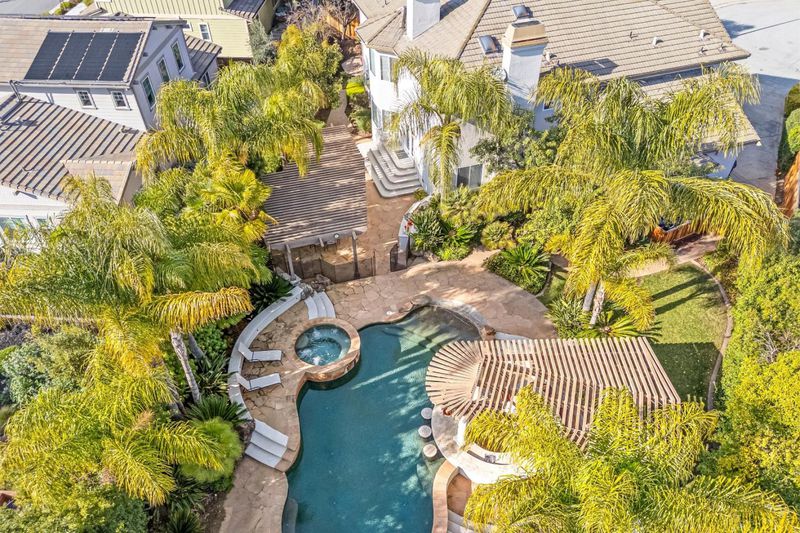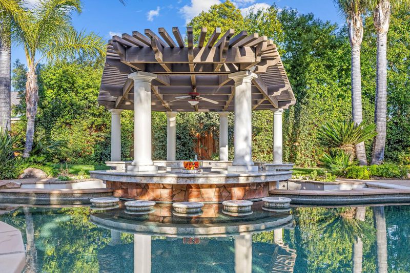Step into this stunning custom home, where the heart of the residence features a spacious kitchen and great room accented by dramatic built-in cabinets, gleaming hardwood floors, and elegant plantation shutters throughout much of the downstairs. The open-concept layout ensures a perfect flow for entertaining, whether youre hosting casual gatherings or formal parties. Enjoy the warm glow from the kitchen garden window, the ease of a convenient wet bar, and the warmth of a gas fireplace in the great rooml Ascend the formal circular staircase to an open landing and second level illuminated by skylights. The expansive primary ensuite is a luxurious retreat, boasting a brand-new bathroom and a cozy fireplace for a spa-like experience. Step outside to a backyard that feels like a tropical paradise, complete with an in-ground pool, soothing spa, swim-up bar, beautiful stone walkways, an outdoor BBQ area, lush mature vegetation, and a relaxing pergola. Additionally, the property features an impressive ADU of approximately 700 square feet, offering a modern kitchen with granite counters, a full bath, and 3 French doors that open directly to the pool areaideal for guests or extended family. Do not let this one get away!