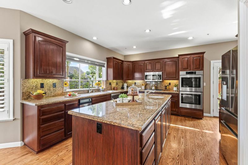 220 Volt Outlet, Countertop - Granite, Dishwasher, Island with Sink, Cooktop - Gas, Garbage Disposal, Hood Over Range, Microwave, Oven - Built-In, Oven - Self Cleaning, Pantry, Exhaust Fan, Refrigerator