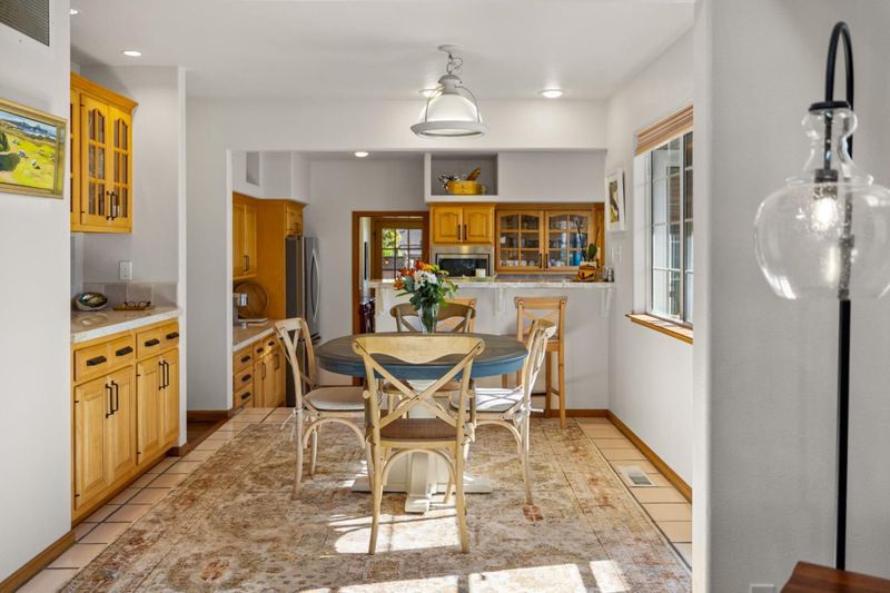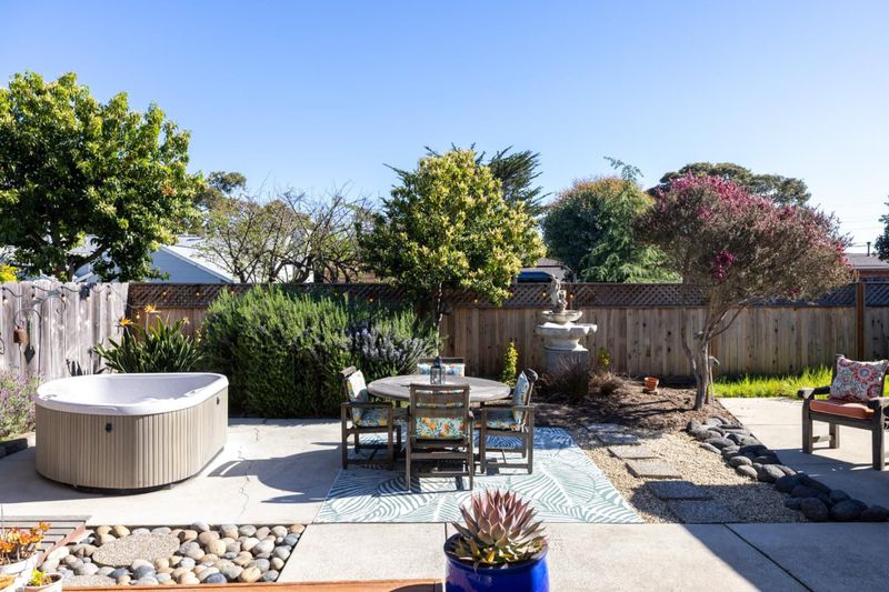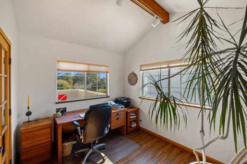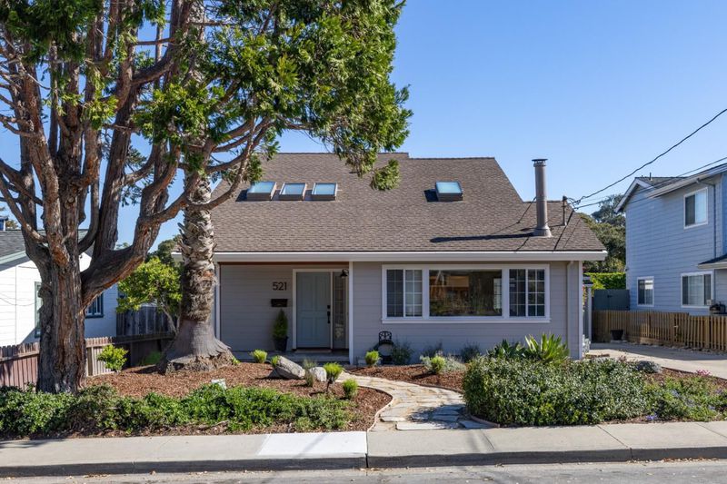 Located in the sunbelt of Monterey and a short distance to the beach, this 1,980 square foot home invites you in with freshly painted and newly landscaped exterior. Upon entering the three bed, two bath home, you will be delighted by the soaring vaulted ceilings of the entry and primary living area. To your left, the graceful staircase leads up to the primary bedroom and bath. Opening off the bedroom is an office or exercise room and a private deck overlooking the gardens. On the main level the spacious, light filled living room has a wood stove tucked in the corner for evening ambiance. This striking room was architecturally designed for comfortable gatherings, either large or intimate. The dining area opens off the room and enjoys built in pecan wood cabinetry and a breakfast bar at the end overlooking the recently, remodeled chef's kitchen. The two bedrooms and bath are off to the left of the dining area. In addition, there are two bonus rooms with infinite possibilities, as a second unit, a hobbyist's fancy or as an extra guest room. The backyard holds a trove of treasures: comfortable wood deck, an outdoor shower adjacent to hot tub, a fountain and areas to expand the garden. Truly a home to embrace and make your own.