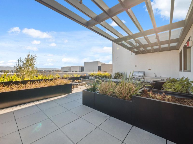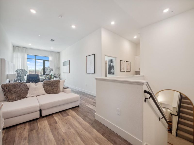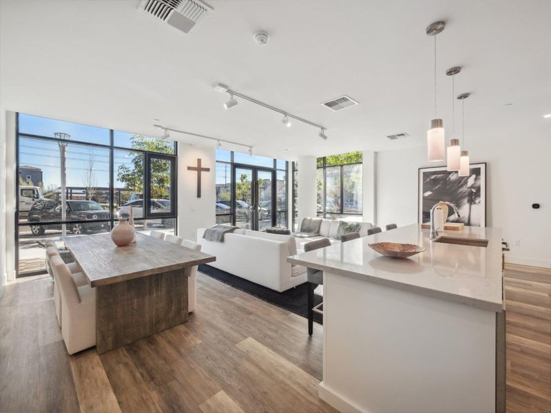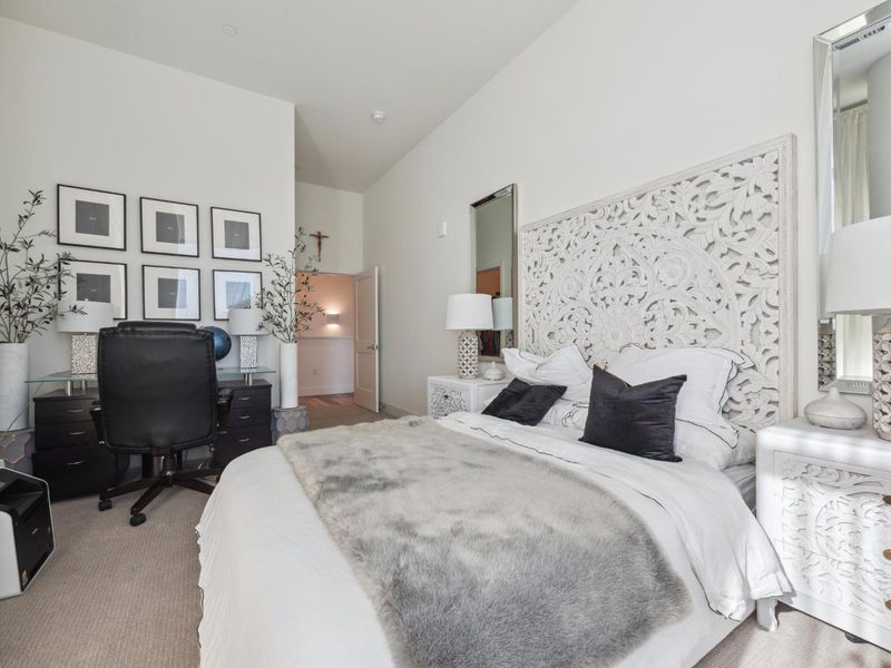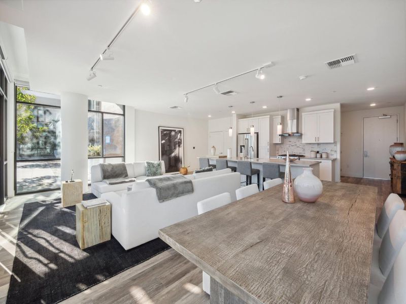 Welcome to this Exquisite 1-bedroom, 1.5-bathroom home offering 1,792 sq. ft. living in the vibrant Silicon Valley with Experience of resort style luxury living in this stunning 2 story condo. As you step inside, you're greeted by natural light through expansive windows & high ceilings. The open-concept layout seamlessly blends the living, dining, and gourmet kitchen areas, high-end stainless-steel appliances, quartz countertops, a spacious island. The well-appointed chef's delight kitchen. The home is enhanced with quartz countertops throughout, hardwood floors, window shades & shutters .A versatile loft area for a second bedroom or creative space. Street level access the unit is zoned for 25% commercial use personal service or office (check with City of Santa Clara). You have access to the main lobby on the 1st level, on the 2nd level, bike storage and pet grooming, a spa and huge swimming pool, community room with flat-screen TVs, a kitchen, pool table, a rooftop deck with BBQs, on the 3rd level, a gym on the 3rd and 4th levels, and a roof top terrace on the 7th level. There is 1 parking space in the gated garage. This prime Santa Clara location places you near top hi-tech companies - Nvidia, Google and Apple Don't miss your chance to call Rambla Place Home!