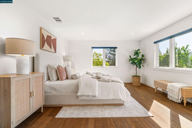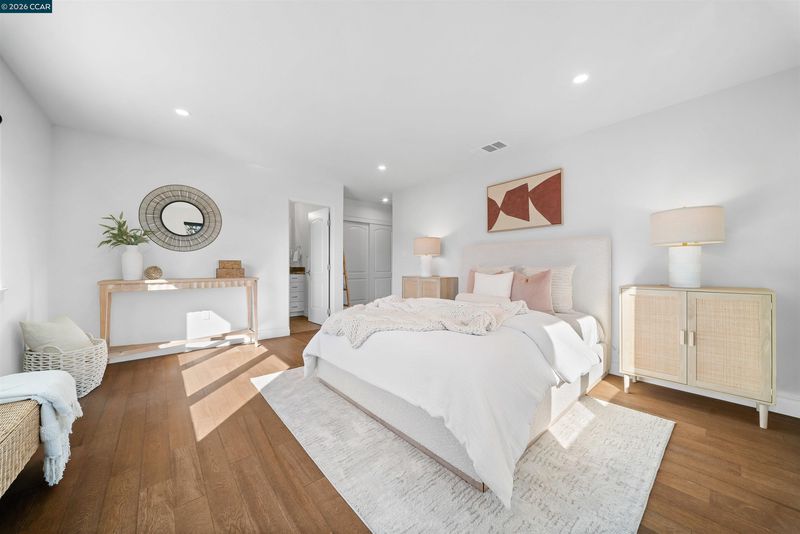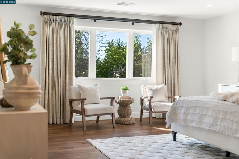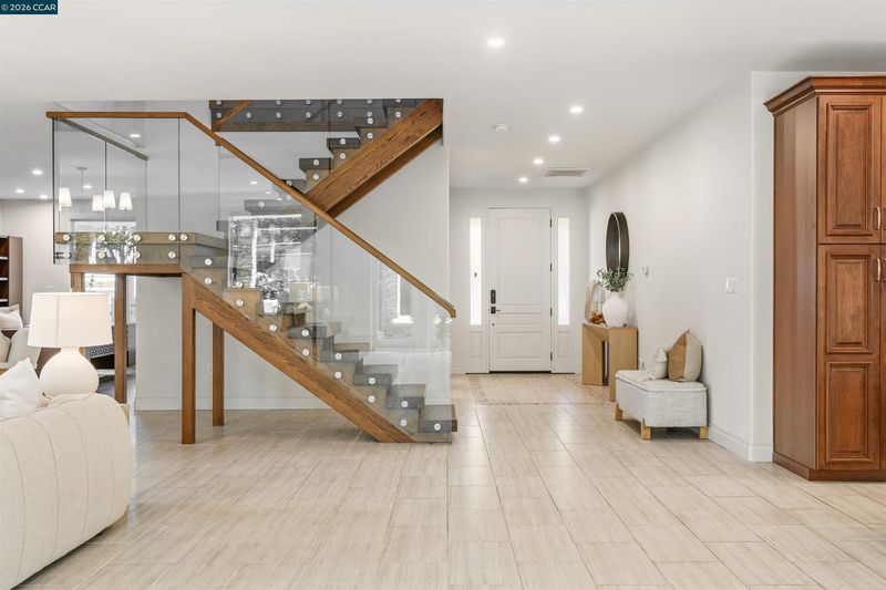 This East facing extensively rebuilt 2016 home offers over 4,000 sq ft of modern living in a setting where homes of this scale are seldom available. Thoughtfully designed with clean lines and quality finishes, the home blends contemporary style with everyday functionality. The main level is anchored by a stunning great room and a chef’s kitchen featuring granite countertops, an oversized island, stainless steel appliances, and a built in dining table. A striking floating staircase serves as a centerpiece, while a spacious laundry room and custom coat room add convenience. Upstairs, the primary suite offers a true retreat with a spa inspired bath and an attached flex space ideal for a gym, office, or lounge. Well designed secondary bedrooms include an en suite and a Jack and Jill configuration. Outdoor living is equally inviting with a covered patio, built in BBQ, and multiple yard areas. Owned solar enhances efficiency, all within close proximity to top rated San Ramon Valley schools, City Center, and commuter routes.