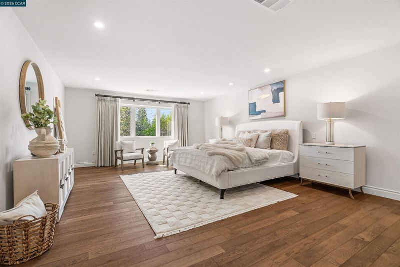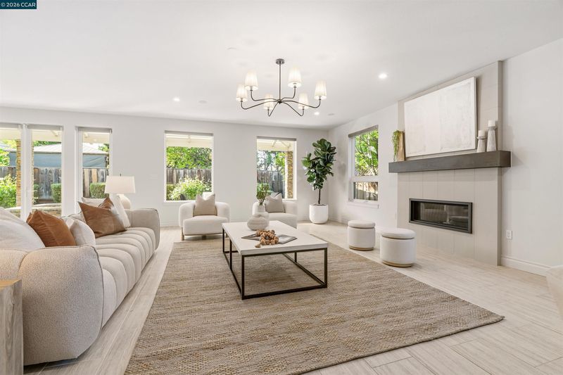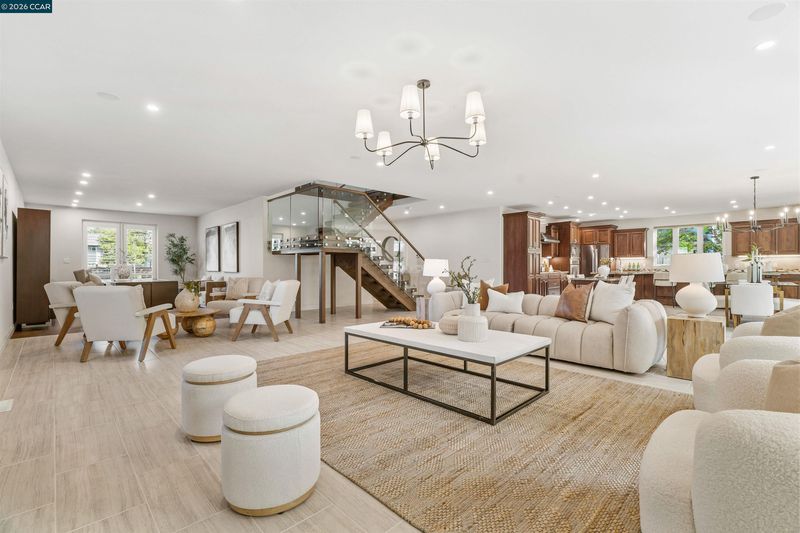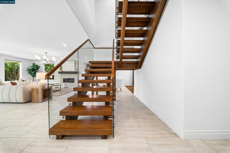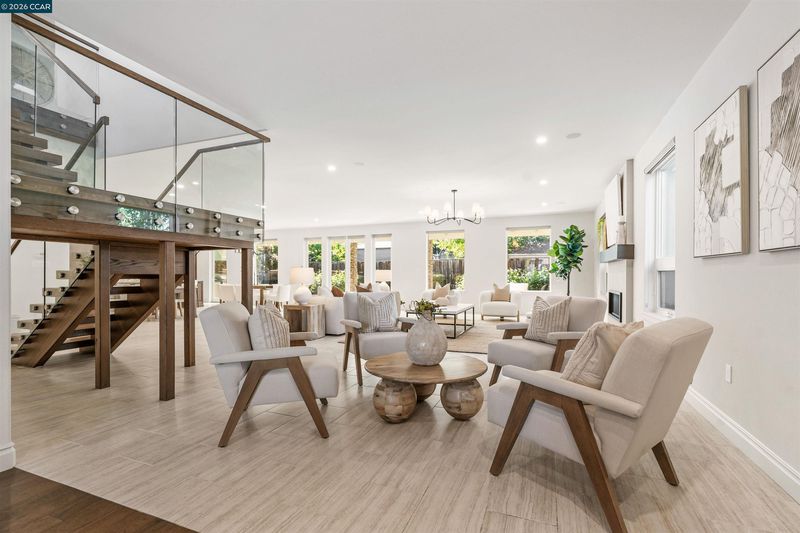 This East facing extensively rebuilt 2016 home offers over 4,000 sq ft of modern living in a setting where homes of this scale are seldom available. Thoughtfully designed with clean lines and quality finishes, the home blends contemporary style with everyday functionality. The main level is anchored by a stunning great room and a chef’s kitchen featuring granite countertops, an oversized island, stainless steel appliances, and a built in dining table. A striking floating staircase serves as a centerpiece, while a spacious laundry room and custom coat room add convenience. Upstairs, the primary suite offers a true retreat with a spa inspired bath and an attached flex space ideal for a gym, office, or lounge. Well designed secondary bedrooms include an en suite and a Jack and Jill confi Outdoor living is equally inviting with a covered patio, built in BBQ, and multiple yard areas. Owned solar enhances efficiency, all within close proximity to top rated San Ramon Valley schools, City Center, and commuter routes