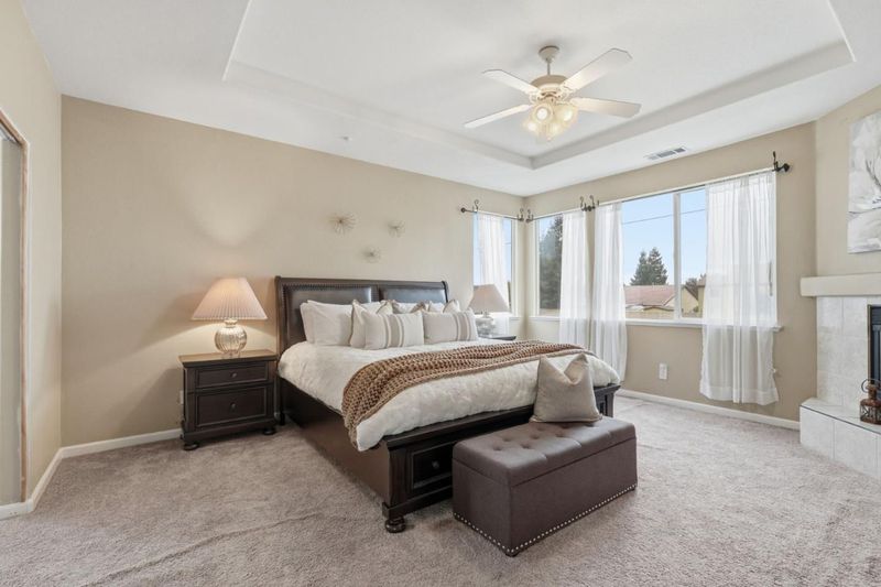 Welcome to this beautiful four-bed, three-bath home with approximately 2,799 square feet, a three-car garage, and high ceilings. The home features an open kitchen with an island, formal dining, family and living rooms, and a downstairs bedroom. Dont miss the spacious primary suite with a fireplace, retreat, walk-in closet, and jacuzzi tub. A large backyard with fruit trees, a nice setting front yard ideal for entertaining, central A/C and heat, a laundry room, and plenty of storage complete this move-in-ready home