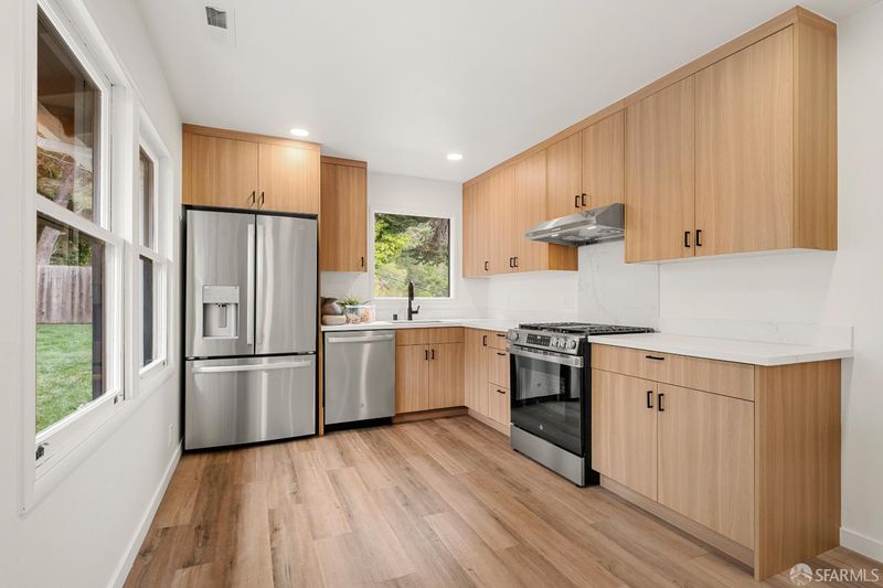 This stunning 3-bedroom, 3-bath home has been completely remodeled with permits, offering modern comfort and peace of mind. Enjoy a brand new roof, brand new furnace, and stylish finishes throughout. Upstairs features three spacious bedrooms and two beautifully updated bathrooms, while the downstairs offers a large flex space with full bathroom - perfect for guests, an office, 4th bedroom, multi-generational living or simply just hanging out. The open-concept layout fills with natural light, flowing seamlessly to the outdoors where new landscaping creates a private, two-level entertaining space ideal for gatherings or relaxing weekends. A two-car attached garage provides convenience and storage. Perfectly situated near Google, YouTube, and major tech and biotech campuses, this home combines modern upgrades, thoughtful design, and unbeatable location. Turnkey, stylish, and close to everything your Rollingwood dream home awaits!