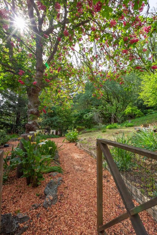 Peaceful Updated Country Living on Nearly 1.5 Acres . Beautifully updated and framed by sun-swept open meadows and majestic trees, this property spans nearly 1.5 acres at the end of a lane. An inviting front porch takes in the tranquil surroundings and sounds of nature. Stepping inside, the ambiance is bright and inviting with refinished hardwood floors, crisp white woodwork, and expansive windows and glass doors. The designer all- white kitchen has Carrara marble counters and stainless steel appliances, including a quality Viking gas range. A separate wing comprises 2 full-size bedrooms and one small bedroom, plus 2 full baths. Perfect for exercise, art, and/or office needs is a detached 2-room studio plus a Nordic-inspired newly added second studio. Tying it all together are many beautiful and versatile outdoor living spaces plus a fully fenced vegetable garden, small orchard, and a chicken coop. Open Houses Sat/Sun 4/11-12 , 1:30pm-4:30pm