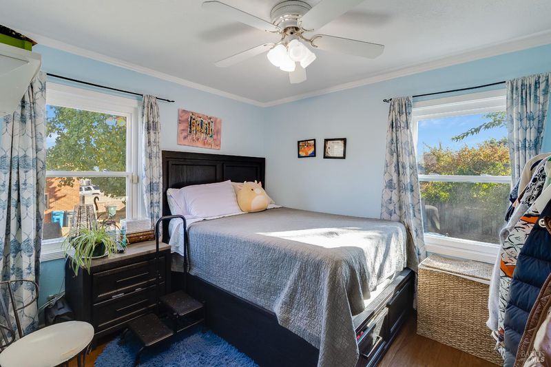 Step into the timeless charm of this classic Vallejo home, where original character and warmth shine throughout. Thoughtfully maintained over the years, this inviting residence blends vintage appeal with versatile living spaces designed for today's lifestyle. Originally a 2-bedroom, 1-bath home, the property now features a converted garage offering an additional bedroom, cozy lounge area, and full bathroomcreating a flexible 3-bedroom, 2-bath layout ideal for guests, extended family, or a private retreat. Inside, you'll find spacious living and dining areas filled with natural light, highlighted by beautiful period details and updated real hardwood floors on both levels, creating a welcoming atmosphere from the moment you arrive. The kitchen and baths preserve the home's classic charm while offering an opportunity to enhance or personalize to your taste. The backyard is a peaceful escape, complete with mature fruit trees, open space for entertaining or gardening, and a large waterproof wooden shedperfect for storage, or a future studio workspace. The property's classic curb appeal begins with its charming front porch and continues throughout every corner of this well-loved home. Conveniently located near Vallejo's downtown, waterfront, and commuter routes.
