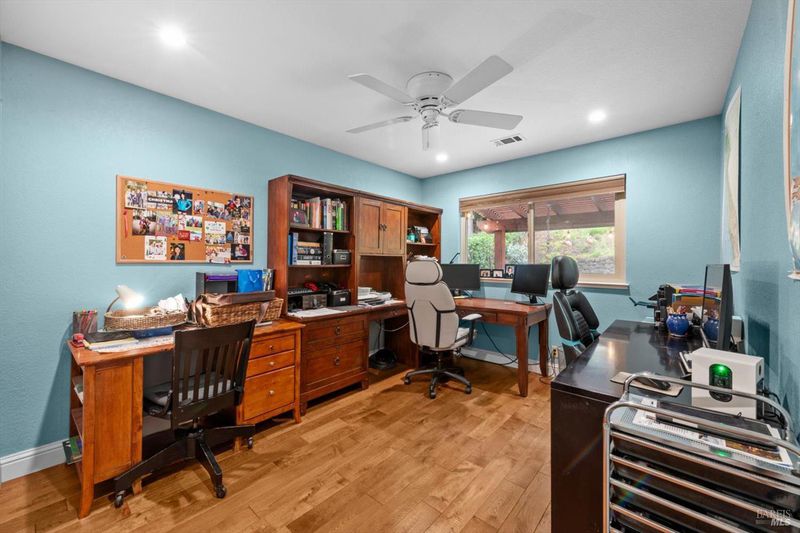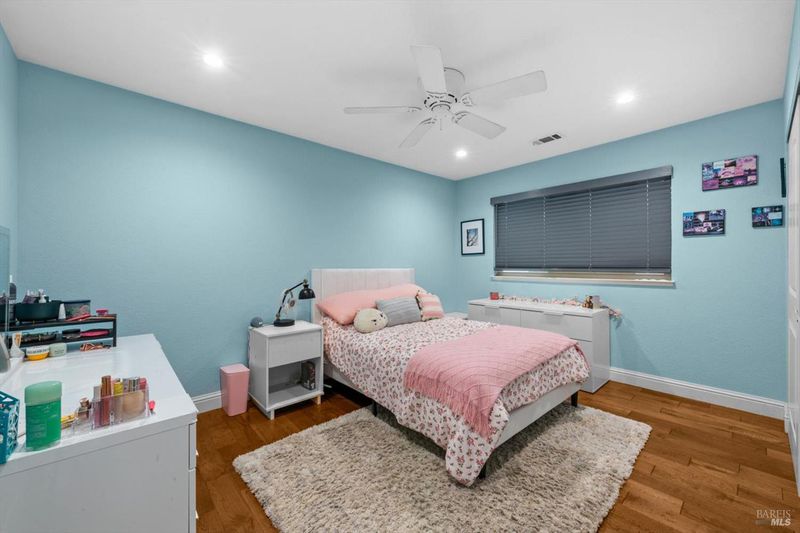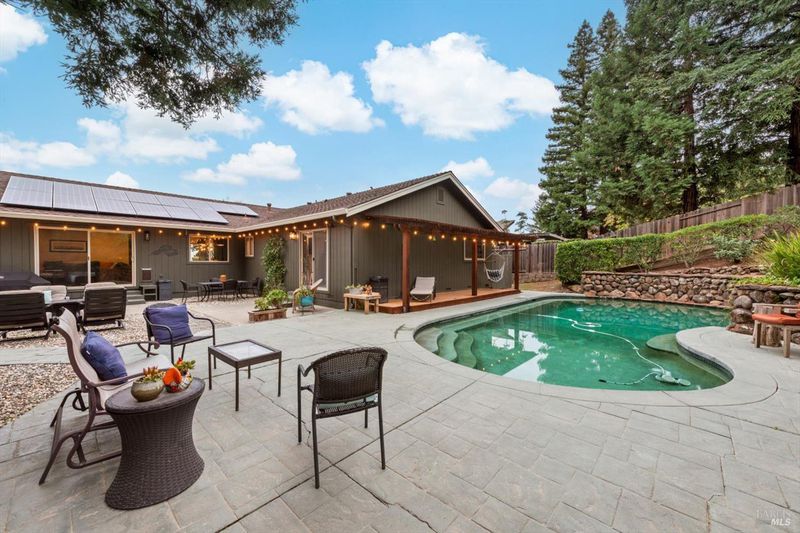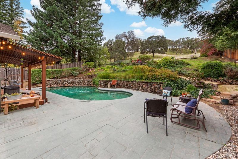 The Ultimate North Vacaville Staycation Compound. This is the one you've been waiting for. Situated on a premium lot backing to the serene, rolling hills of Pleasants Valley, this home combines modern luxury with priceless utility. The heart of the home is the stunning 2018-remodeled kitchen, featuring a massive quartz island, perfect for entertaining. It flows seamlessly into the family room, anchored by a newer gas fireplace and beautiful Distressed White Oak hardwood floors. This home has been intelligently upgraded from top to bottom. Enjoy a brand-new, high-efficiency Furnace & A/C system (2018) and a 2022 Solar Panel system, intentionally sized for future growth and delivering a true $0 electrical bill since installation. Both the primary and guest bathrooms were fully remodeled in 2019. The backyard is a private resort with a pool, garden beds, and even a chicken enclosure. Crucially, this property features dedicated RV/Boat parking, saving you thousands in storage fees. New large Tuff shed. Zoned for the highly-regarded Alamo, Jepson, and Vacaville High schools, all with in walking distance! This is more than a home; it's a turnkey lifestyle.