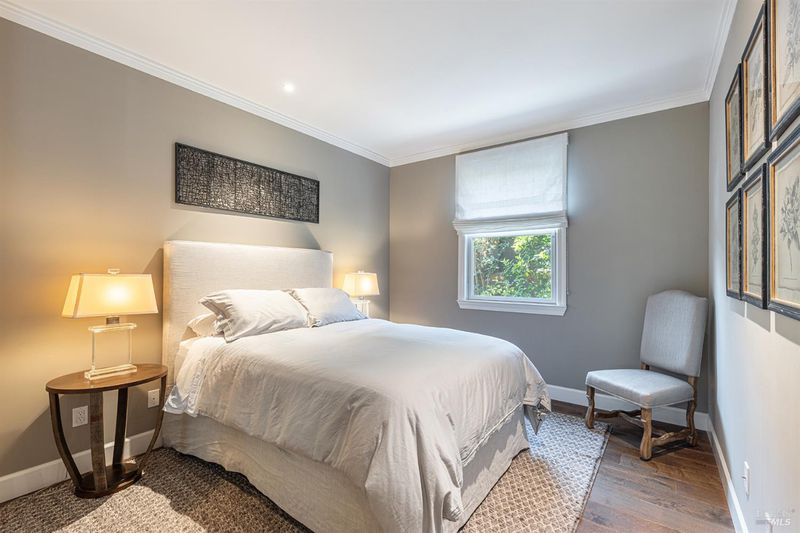 Welcome to the exquisite residence at 1982 Adams Street in North Yountville. This custom single-story home spans 2,200 square feet and offers a luxurious lifestyle. With three spacious bedrooms and 2.5 beautifully designed bathrooms, it serves as a perfect retreat. Discover vaulted ceilings, wide plank French oak floors, and Carrara marble in the kitchen, complemented by a large walk-in pantry. Natural light floods the living spaces through LaCantina bifold doors in the great room and primary suite. The primary bedroom boasts a Blaze fireplace, while the great room has a custom fireplace. Indulge in Restoration Hardware light fixtures in the dining room and primary bedroom. Adorned with custom Belgian linen drapes, the home's interior is sophisticated. The professionally designed yard features high-end turf and lighting. The large, private backyard is an oasis with a Bocce court and Restoration Hardware firepit. Experience resort-style allure with a Bluestone driveway, porch, and walkway, providing longevity, durability, and a timeless aesthetic. This turnkey property, with an attached garage, is located three blocks from the renowned French Laundry and a short walk to R&D and Bouchon, combining luxury with sophistication. Don't miss this rare, single-story home in Yountville.