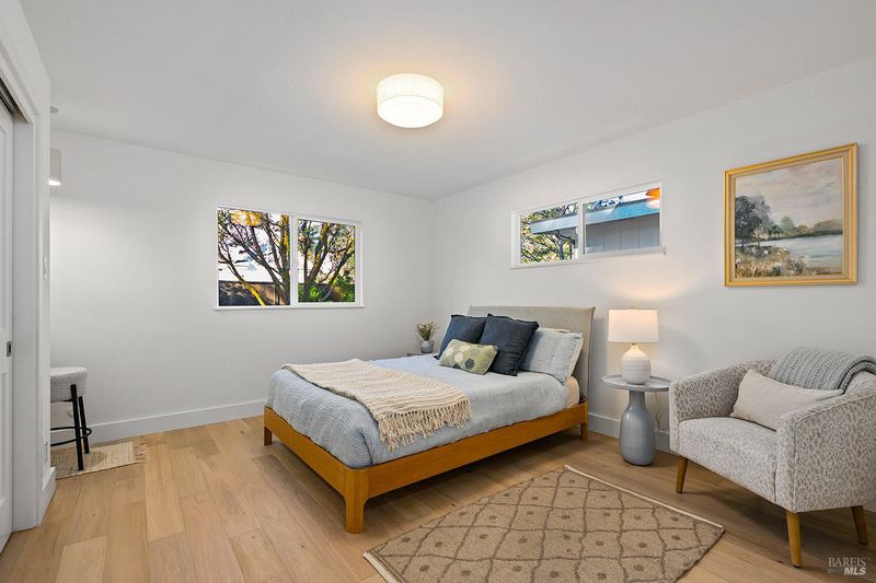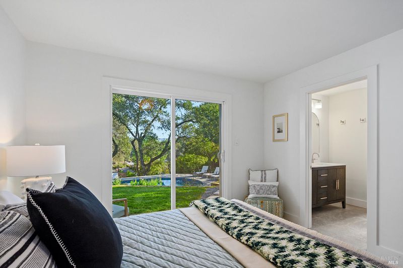 Stunning single story home on an incredible lot with privacy and views in downtown Healdsburg. This recently renovated high end Mid Century style home has designer touches and boasts 4 generous bedrooms, plenty of space for gathering and entertaining, a fabulous pool and sits on a .45 acre parcel. Tucked back off University the sun filled flag lot has mature landscaping and views to Fitch Mountain and beyond. Inside you will love the brand new kitchen with stainless steel appliances, wide plank French Oak floors, gorgeous countertops and an island with bar seating. The kitchen space is expansive and includes a breakfast area and also opens to additional seating that provides access to the outdoor patio. The living room with a wood burning fireplace connects with the dining area that offers views to the pool. Enter the primary suite that has a sliding door that opens to a patio with views and a luxurious bathroom with soaking tub and walk in shower. Three additional spacious bedrooms and an outdoor studio that is perfect for your home office or gym . Resort style living near downtown Healdsburg. Please park on frontage road.