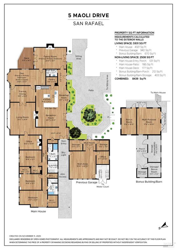 Welcome to 5 Maoli Drive, a rare estate on nearly two acres in the coveted Lucas Valley Big Rock enclave. Tucked away on a private road against miles of open space yet minutes from Hwy 101, this property offers exceptional privacy, serenity, and iconic Marin scenery. The single-level Craftsman residence spans over 5,000 sq ft and is filled with opportunity, ready for your imagination and priced below market so you can bring your vision to life. Inside, a chef's kitchen with center island opens to a large family room with French doors leading to a sunlit patio and level lawn. A private primary wing features a fireplace and view deck, while three additional bedrooms provide generous space for guests, office, or flexible living. A detached bonus structure offers potential for a gym, garage, studio, or equestrian use. The expansive backyard is a peaceful sanctuary framed by mature landscaping and open space, with direct access to the Lucas Valley Preserve and Big Rock Ridge Trail for panoramic views, hiking, and biking. A rare blend of seclusion, location, and possibility awaits.