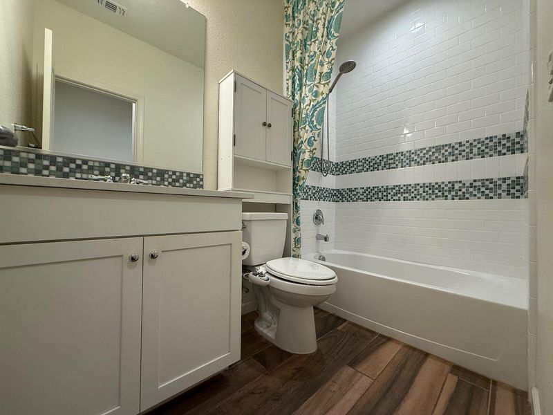 This former model home is situated in a 55+ gated community and ready for the fussy buyer! Situated in the front of the complex and within walking distance to the pool, club house & amenities in the complex! Upgraded kitchen with stainless appliances, quartz countertop w/tile backsplash, pantry, plantation shutters, tile flooring throughout main traffic areas, wainscoting, can lighting, surround sound, ceiling fans, larger laundry room with wash basin, 2 car attached garage, slate backyard patio......all packaged in a single story floorpan! You must see this home for yourself!