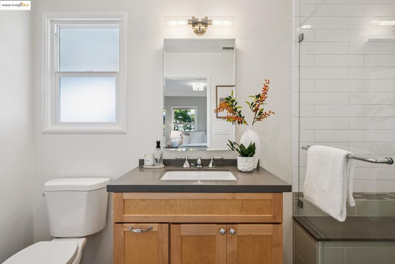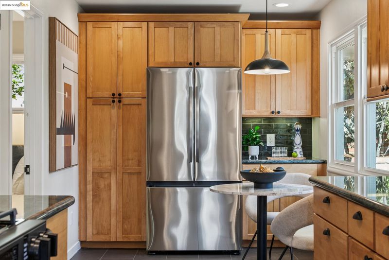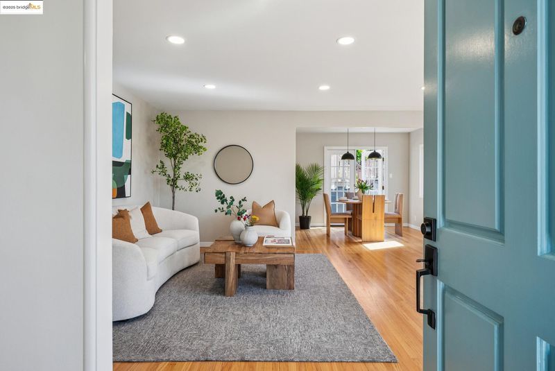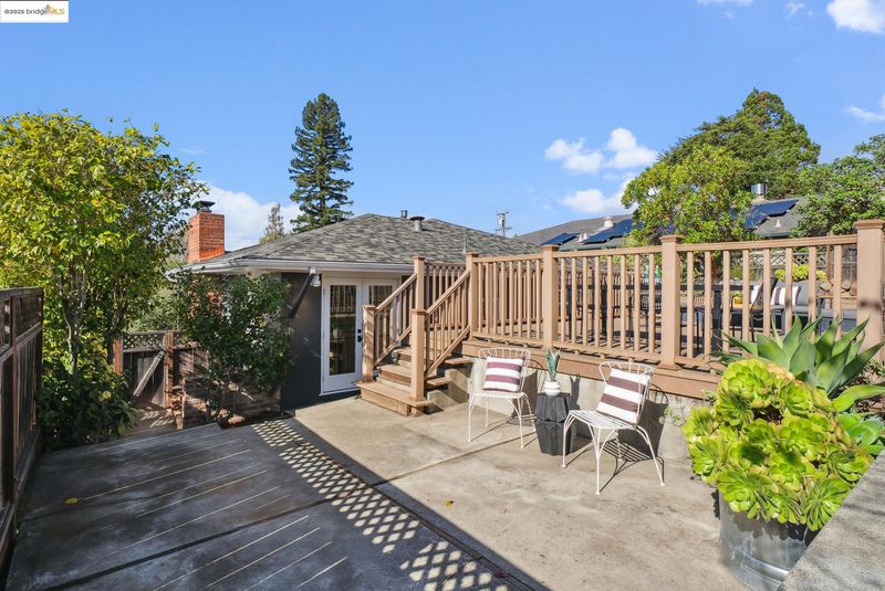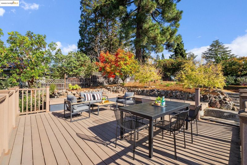 Bask in natural light and enjoy the flexibility of this beautifully updated home in Oakland’s desirable Oakmore neighborhood. 3 bedrooms and 2 bathrooms, including a primary en-suite, are all on one level. A lower-level bonus room provides flexible space for an office, gym, or media lounge. The open layout offers a seamless connection between the living spaces, kitchen, and outdoor areas, creating an ideal setting for everyday living and entertaining. The updated kitchen features new tile flooring, polished counters, designer lighting, and a custom tile backsplash, along with new appliances and thoughtful upgrades throughout. The dining area opens through French doors to a sunny deck and a yard that feels endless, framed by sweeping Bay views. The spacious two-car garage with interior access adds convenience and storage. Outside, enjoy a massive deck, drought-tolerant landscaping, and mature fruit trees with potential for an ADU* (buyer to verify). Close to Park Blvd shops, Rocky’s Market, Montclair Village, parks, trails, and easy commuter access, this home offers the perfect blend of charm, comfort, and community.*Buyer to investigate.