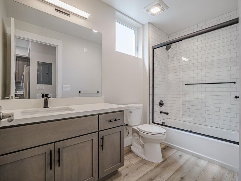 - Primary - Stall Shower(s), Shower and Tub, Shower over Tub - 1, Stall Shower, Tile, Tub, Updated Bath