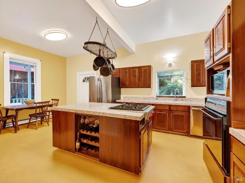 Built in 1905 for the owner of the mill, the 5 bedroom Navarro Mill House is ready for a new chapter. Lovingly restored by the current owners for both function and aesthetics, the home has a new foundation and updated plumbing & electrical. Features include high ceilings, spacious rooms and old growth Redwood throughout. Hydronic heating keeps you warm in the winter months, Nature's air conditioning keeps you cool in the summer. Just off the large kitchen is a formal dining room, adjacent to that is a roomy, comfortable living room. There's one bedroom downstairs, en suite, as well as a powder room; laundry is located on this floor as well. Upstairs has four bedrooms and two bathrooms. The covered front and side porches make lovely outdoor seating areas. Operated as both a bed and breakfast and a vacation rental at different times, the owners have maintained the business license and permits. There is a small second unit, formerly the carriage house, that is currently rented long term and an Airstream trailer that can also be rented out short term. The exterior of the home features mature landscaping, a patio with a hot tub and several storage buildings. The home is ideally located a short drive to the local wineries and vineyards and yet not too far from the coast.