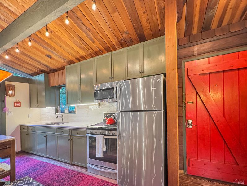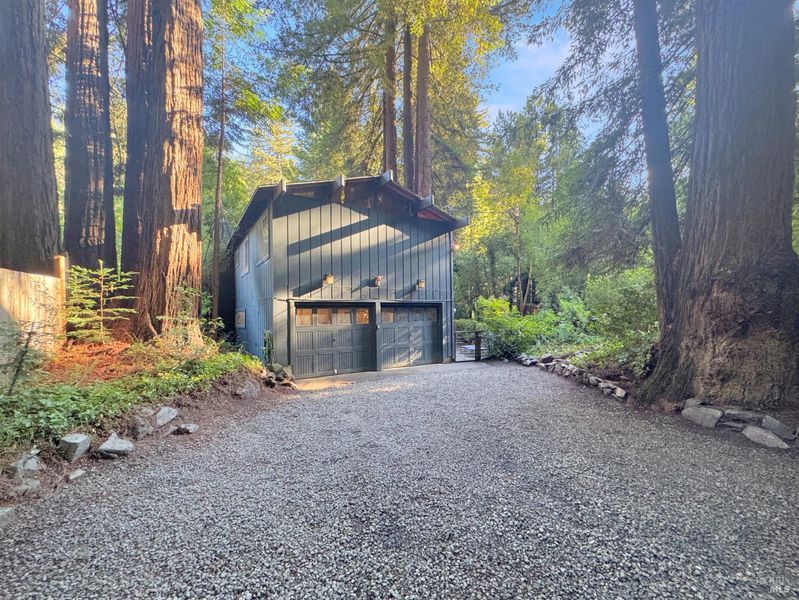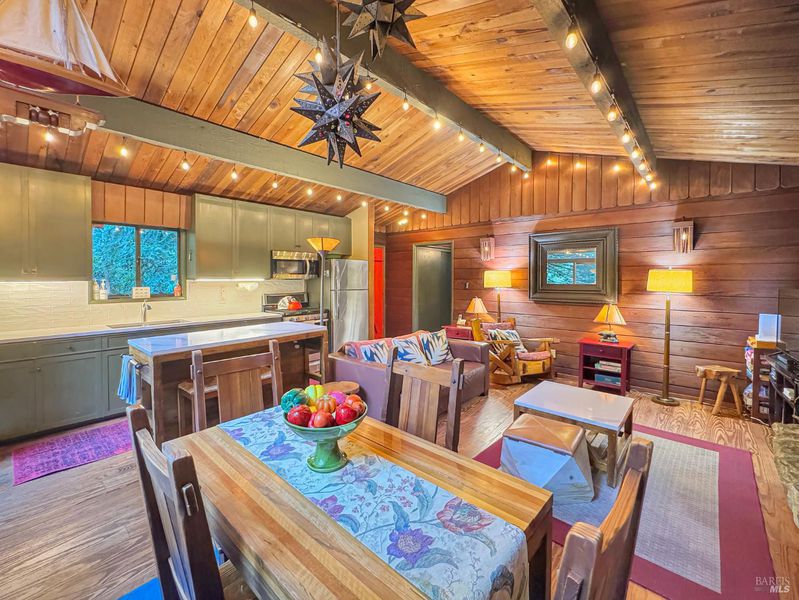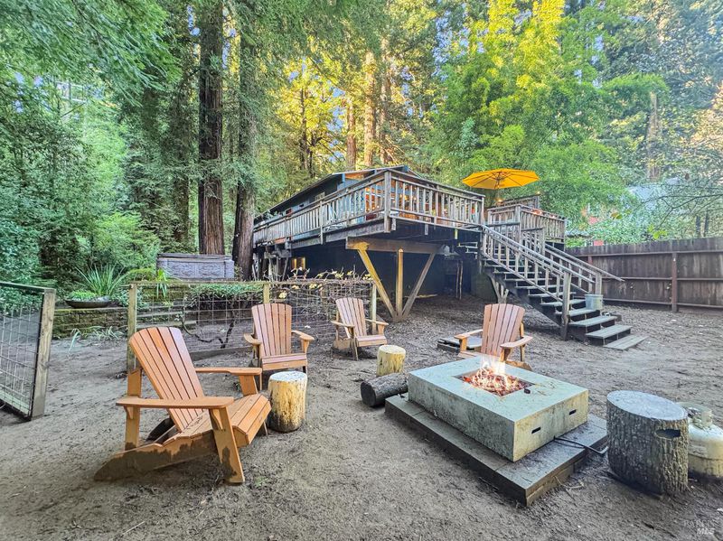 Creekside serenity in Cazadero! This charming 2-bedroom, 1-bath home sits on the creek side of the road, offering peace, privacy, and the soothing sounds of flowing water. The property includes two parcels totaling just under acre the home on APN #105-070-047 (approx. 0.26 acres) and an adjoining parcel #105-070-046 (approx. 0.20 acres), providing extra space and potential. Inside, you'll find a cozy open-concept living, dining, and kitchen area anchored by a fireplace and seamlessly opening to a spacious back deck that overlooks the lush redwoods and Austin Creek. Enjoy multiple outdoor seating areas, creek access, and a two-car garage for convenience. A peaceful retreat surrounded by nature, this property captures the essence of Cazadero living a private escape where the forest meets the creek.