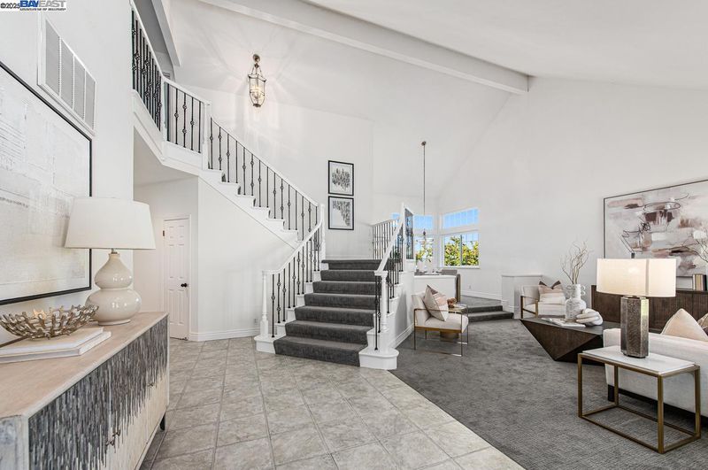 Tucked away at the end of a quiet cul-de-sac, this beautiful (EAST FACING) Vintage Heights semi-custom home welcomes you with a grand iron door that sets the tone for the style and sophistication within. The spacious 2837 sq. ft. floor plan features cathedral ceilings, spacious living room and formal dining, tile floors, a sweeping iron staircase, and abundant natural light. The heart of the home is the wonderful kitchen—complete with stone counters, large center island, pantry, custom cabinetry, and a charming breakfast nook overlooking the backyard. It’s the perfect gathering space for morning coffee or lively evenings with friends. The inviting family room opens to a serene backyard retreat featuring a pavered patio and a sparkling pool—ideal for summer entertaining. Elegant primary suite offers sweeping views of Mt. Diablo and a spa-like bathroom with a walk-in shower, large tub and generous closet space. There is an open landing that's perfect for home study. Spacious secondary bedrooms. Located in one of Pleasanton’s most sought-after neighborhoods, this home combines luxury, comfort, and an unbeatable location—close to top-rated Pleasanton schools, parks, and the vibrant downtown lifestyle Pleasanton is known for. Close hiking trails and wineries