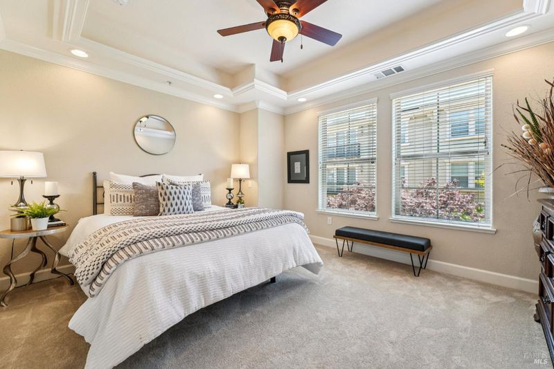 Welcome to the highly sought-after gated community of Belvedere, where luxury and lifestyle come together. This distinctive end unit is a rare find, offering an abundance of natural light thanks to its many additional windows, a standout feature that truly sets it apart. The beautifully appointed kitchen features custom cabinetry, stainless steel appliances, and granite countertops, perfect for both everyday living and entertaining. The primary bath is a luxurious blend of marble and granite, with rich cabinetry and a spacious walk-in closet. Crown molding adds elegance throughout, and the owners have lovingly enhanced the home with thoughtful upgrades over the past few years. This is a home you won't want to miss. Additional highlights include two reserved spaces in the secure, covered parking garage, elevators and access to Belvedere's spectacular 10,000 sq. ft. Clubhouse, complete with an indoor pool, spa, fitness center, library, outdoor patio with grills, and beautifully maintained landscaping. Belvedere also offers a vibrant community life, including water aerobics, a book club, card group, and poker night. Residents can even rent out the Gourmet kitchen and dining area for special occasions! Don't miss this Gem!