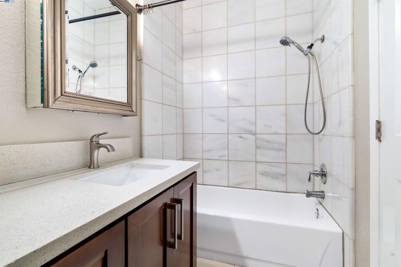 On the hunt for an affordable home with sought-after location and schools? This updated Centerville starter condo delivers! Convenient 1st floor location with no stairs, gas fireplace, luxurious acacia engineered hardwood floors, shaker style kitchen cabinets, marble kitchen countertops, 1 year old stainless steel refrigerator and oven/range, plantation shutters, recessed lights, dual vanity with quartz countertop. 1-carport parking space. Walk to restaurants, shopping centers, train station and Quarry Lakes. Centrally located with short drives to Dumbarton Bridge and the BART station. High ranking Fremont schools: American High School, Oliveira Elementary.