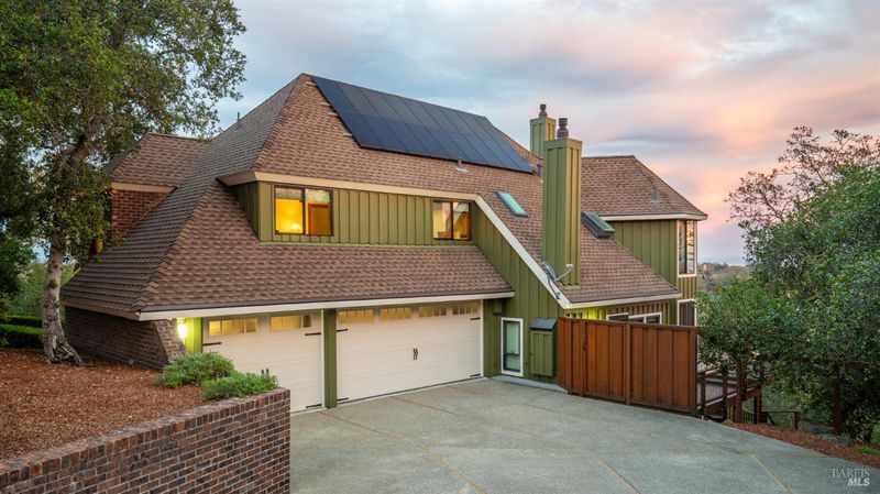 Positioned on an expansive 1.7 acre in the coveted Atherton Oaks neighborhood, this custom 4-bedroom, 3-bath residence offers a rare blend of privacy, elevated design, & awe-inspiring eastern views across the San Francisco Bay to Mount Diablo. Gracefully sited among mature oak trees, the home captures the essence of California living with a seamless connection to its natural surroundings. Vaulted, beamed ceilings & rich oak flooring set a warm, sophisticated tone throughout living spaces. Large picture windows & multiple decks frame sweeping panoramas.The well-appointed kitchen is equipped with stainless appliances, granite countertops, & ample cabinetry, while adjacent areas flow easily to outdoor spaces. Built-in cabinetry throughout the home reflects a commitment to quality & craftsmanship. The spacious primary suite offers a tranquil retreat, complete with soaking tub & generous walk in closet. A versatile bonus room on the lower level & oversized 3 car garage add additional space. Included solar panels reduce utility costs. The fenced yard blends native landscaping with the surrounding wooded serenity. Homes in this sought-after enclave of Atherton Oaks are rarely available, celebrated for their privacy, architectural character & proximity to the best of the Bay Area.