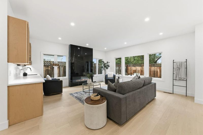 Cuesta Park masterpiece with stunning new construction! This exceptional 4BR/3.5 BA, 2,230 sq ft home has been reimagined with designer flooring, energy-efficient windows, modern fixtures, new roof, contemporary lighting, and state-of-the-art systems. Step into an open layout with recessed lighting, electric fireplace, and smart home conveniences. A bedroom and full bath downstairs provide versatile living. The chef's kitchen shines with quartz countertops and backsplash, large island, premium stainless appliances, wine cooler, and soft-close cabinetry. Bathrooms offer spa-like indulgence with LED mirrors and high-end finishes. Step outside to a landscaped backyard with fire pit, swing set, and patio perfect for dining or relaxing. The home's new construction preserves the original foundation while delivering modern luxury. Located in a top-rated school district, this prime Cuesta Park location offers walkability to the park's tennis courts, dog area, and playground, plus Ranch 99, Nob Hill, and shopping. Minutes to Castro Street's dining, under 15 minutes to Google and Apple Park, adjacent to El Camino Hospital with easy 101/280 access. Enjoy tree-lined streets and a close-knit community where modern luxury meets neighborhood charm. Move-in ready perfection!