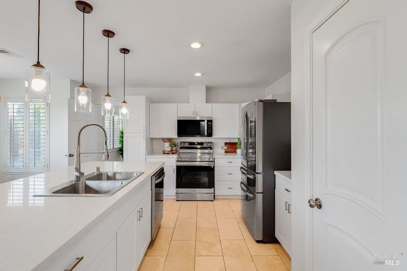 Welcome to this beautiful, turnkey Premiere home in one of Benicia's most coveted neighborhoods. Boasting an open-concept floor plan with soaring cathedral ceilings, this 3-bedroom plus bonus room home is the perfect blend of style and function. Recently updated with a brand-new kitchen, plush new carpeting, and fresh interior and exterior paint, this residence is truly move-in ready. The heart of the home features a centralized office/bonus room, a stylish wet bar and a bright breakfast nook. Upstairs, enjoy panoramic views of the water and city lights from the spacious primary suite. Additional amenities include a finished 2-car garage ideal for a home gym, an interior laundry room, and a large gated side yard with RV/boat access, a tough shed and a dog run. The drought-resistant landscaping and new fencing provide a low-maintenance retreat and the raised garden beds make for a gardener's delight. Located just steps from the Big Slide Park and Matthew Turner Elementary, and minutes from the historic charm of First Street's shopping and dining. Your Benicia dream starts here!