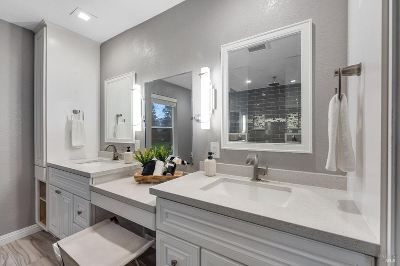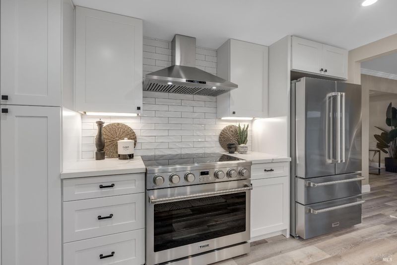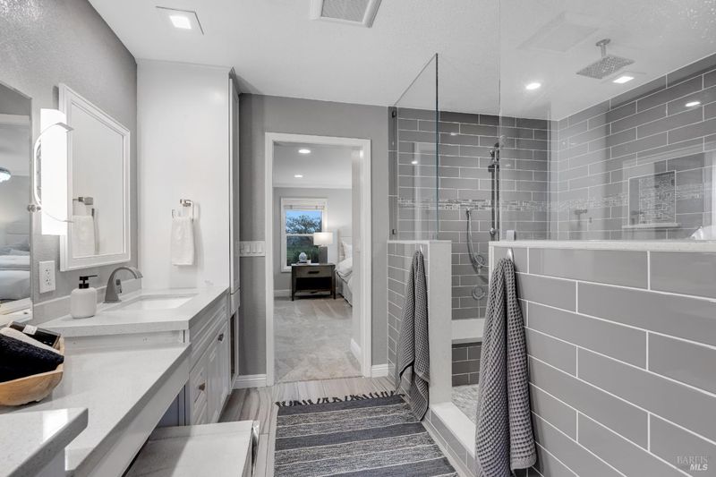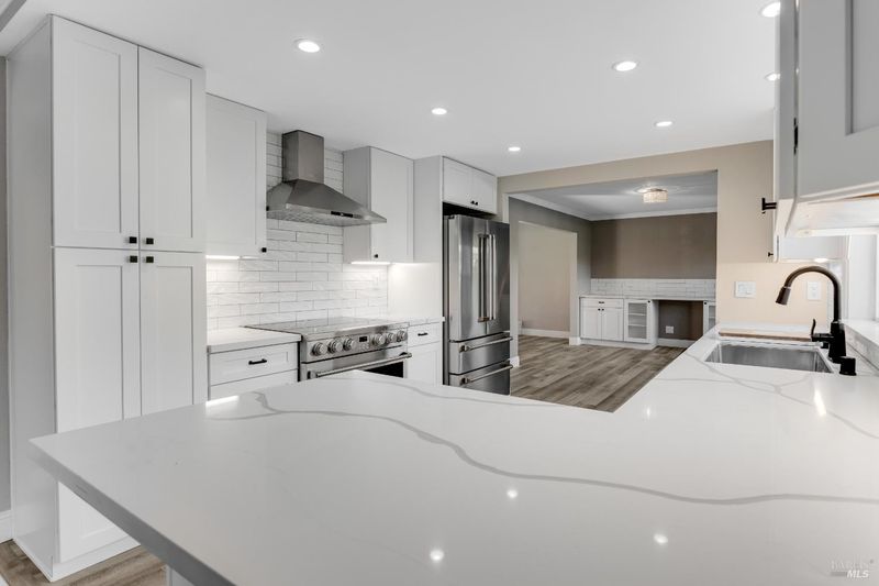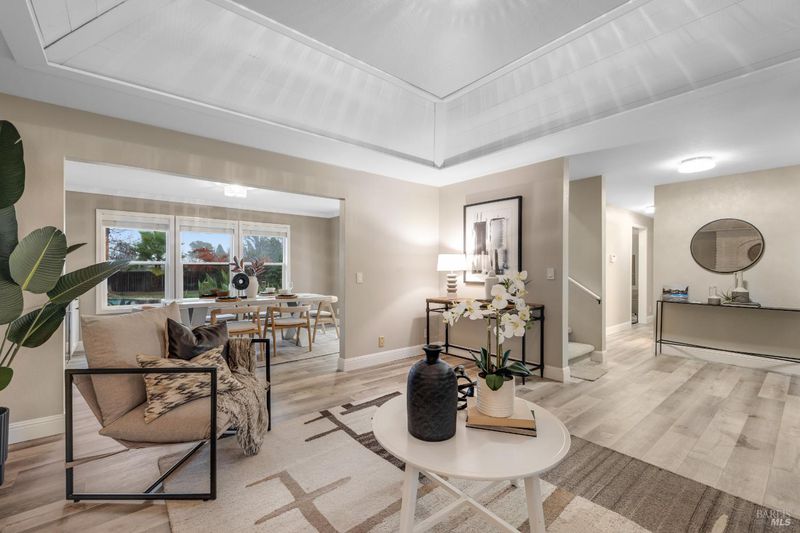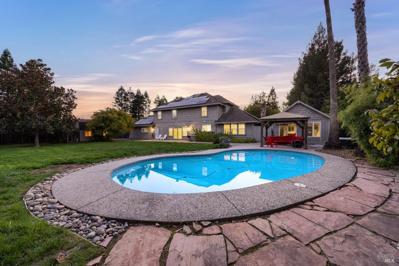 Experience your own slice of paradise and modern luxury in this beautifully upgraded 4-bedroom, 3-bath NW Santa Rosa Estate, professionally staged, offering approximately 2,207 sq.ft. of refined living space PLUS a detached 430 sq.ft Pool House/Game Room on a picturesque 1.05-acre lot designed for beauty, comfort, and connection. Every space feels open and inviting, with light dancing across elegant new floors and tasteful designer finishes throughout. The gourmet kitchen serves as the heart of the home, showcasing quartz countertops, soft-close cabinetry, Moen sink, and premium Thor appliances, complemented by a stylish dining area with coordinating quartz buffet. The main level features a guest bedroom and full bath, while upstairs, the serene primary suite offers a cozy fireplace, expansive walk-in closet, and a spa inspired bathroom with dual vanities and a beautifully tiled shower with dual-head fixtures. Step outside to your private oasis with a sparkling pool, shaded gazebo, lush lawn, mature trees, and a spacious pool house/game room perfect for entertaining. Enjoy incredible, peaceful views from every angle. A detached lofted shed, 3-car garage with brand new garage doors, and solar panels complete this extraordinary property.