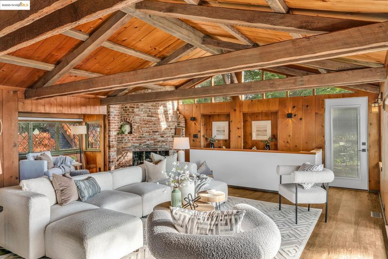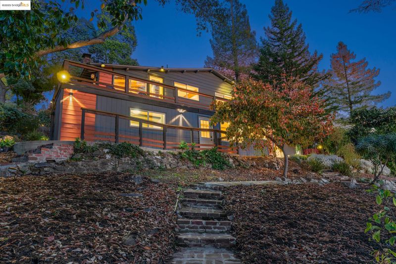 Nestled in the heart of Montclair, this whimsical storybook home feels like a dream come to life. Set on an expansive lot with lush, mature landscaping, it offers a sense of privacy and serenity rarely found. Meandering garden paths lead to sun-dappled sitting areas and multiple decks perfectly positioned to capture the glimmer of the bay and the distant San Francisco skyline. Each outdoor space invites quiet reflection, conversation, or starlit evenings surrounded by nature’s embrace. Inside, the home delights at every turn with its cozy alcoves, charming built-ins, and a fanciful brick fireplace in the spacious living room with picture-perfect bay views. The uniquely updated kitchen and baths blend modern artistry with timeless elegance—stylish yet warmly inviting, each space crafted with an eye for detail and design. A separate bonus area with its own entrance adds a touch of intrigue, featuring a kitchen, bath, and three additional rooms that live like a private retreat—ideal for guests, creative work, or simply a place to dream. From sunrise coffee on the deck to twilight gatherings beneath the trees, this Montclair haven invites you to slow down, breathe deeply, and live your own modern fairytale among the gardens and the view-filled skies.