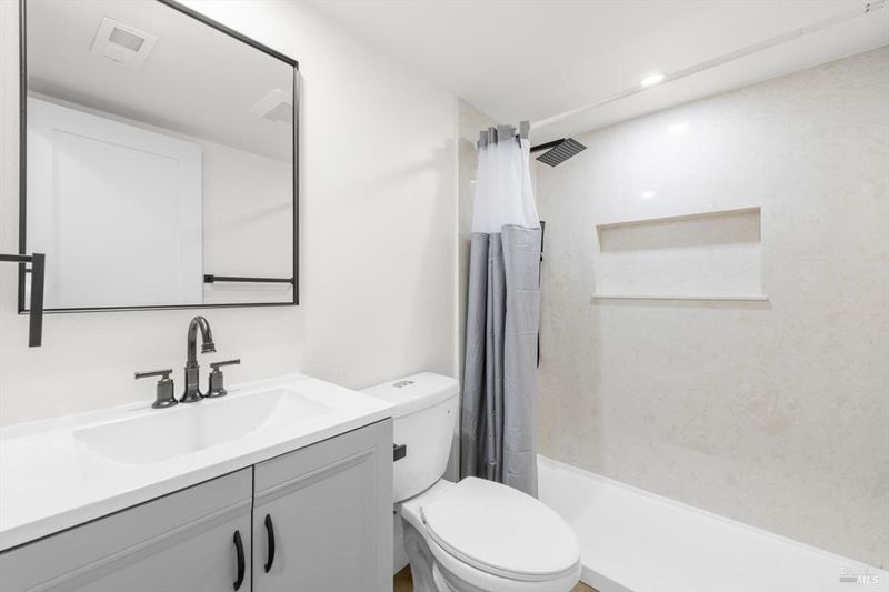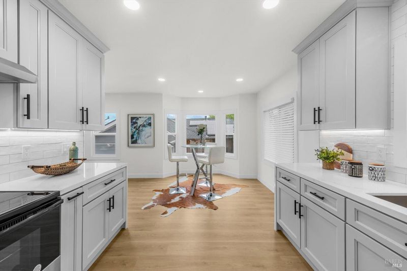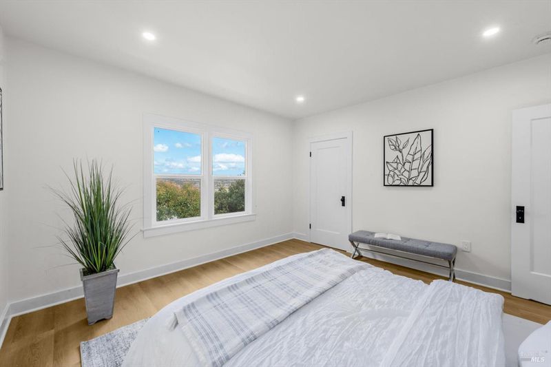 Experience stunning Carquinez Strait views right from your living room in this beautifully remodeled 3-bedroom, 2-bathroom home! This turn-key gem boasts a brand-new kitchen with sleek quartz countertops, custom backsplash and stainless steel appliances, a formal dining area, and a spacious living room with an electric fireplace overlooking the water. Just a few steps up, you'll find two large bedrooms and a stylish bathroom featuring a custom tile shower. The private primary suite is on its own level, complete with an elegant ensuite and a separate entrance. Recent upgrades include new windows, LVP flooring, fresh interior and exterior paint, a new backyard retaining wall and much more. Home also features central heating and air! Style, comfort, and breathtaking views await you in the heart of the Bay!