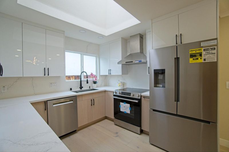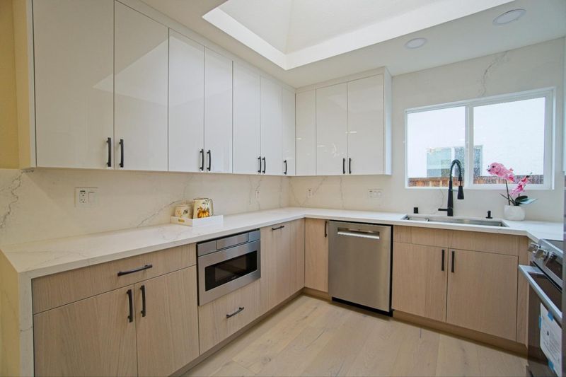 - Countertop - Quartz, Dishwasher, Garbage Disposal, Hood Over Range, Microwave, Oven Range - Electric, Refrigerator, Skylight