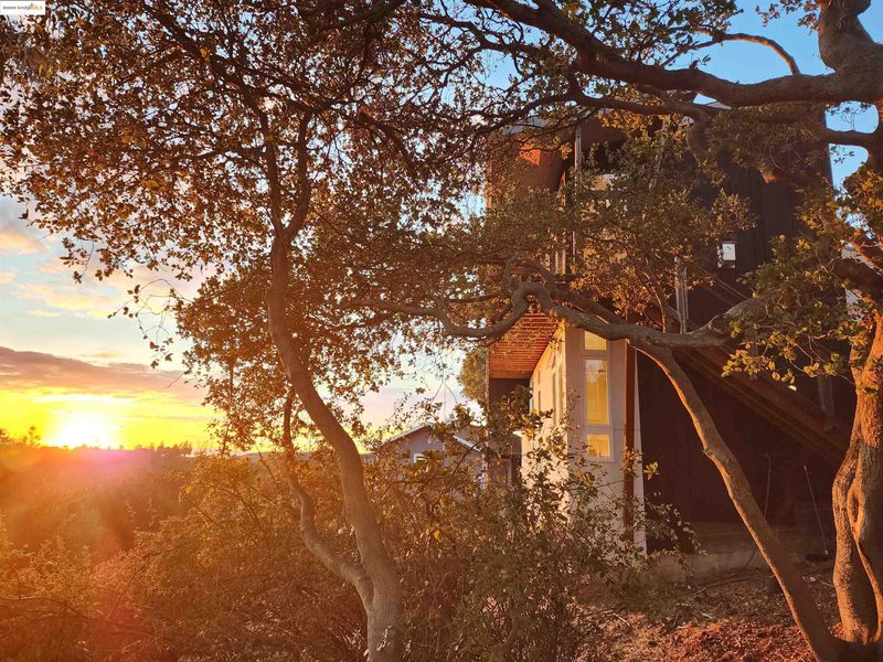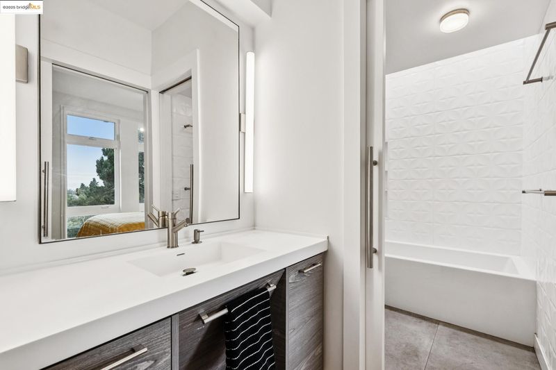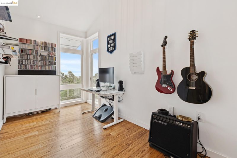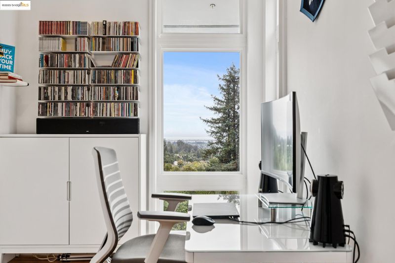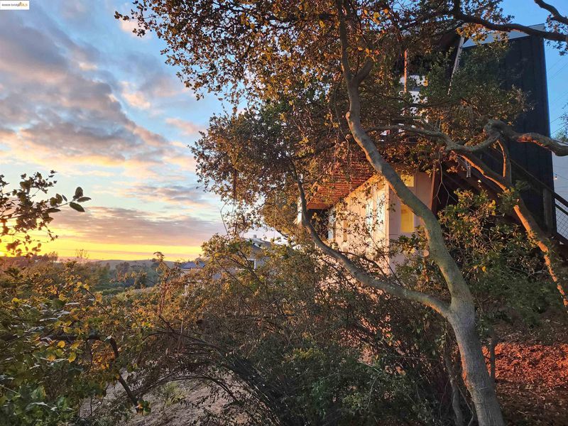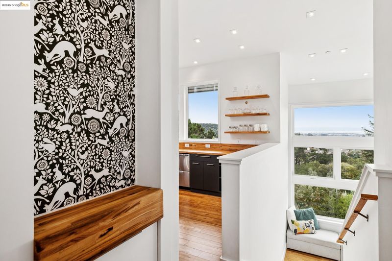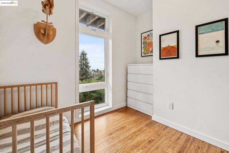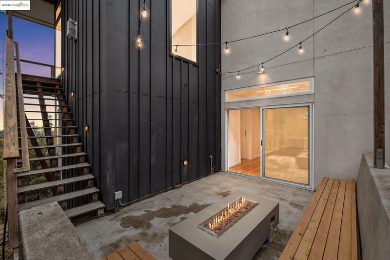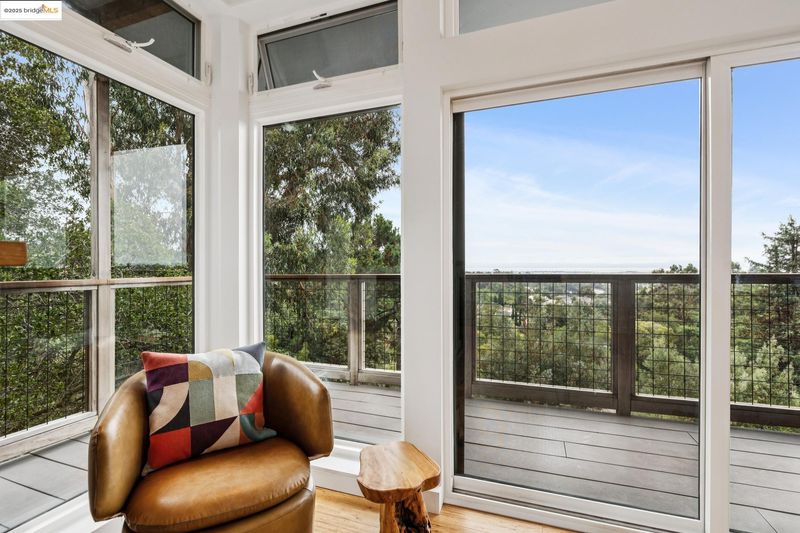 Perched in Oakland’s coveted Sequoyah Hills, this striking modern home feels like a luxe treehouse with panoramic water and skyline vistas. Soaring ceilings and views from every room! Completed in 2020, the home blends sleek design with refined comfort. A vaulted, skylit entry opens to a sun-drenched great room with floor-to-ceiling windows, gas fireplace, and seamless flow to a wraparound view deck and lower patio with built-in seating and firepit, perfect for relaxed entertaining. Downstairs, three airy bedrooms and an office boast high ceilings and enjoy bay views through 8' tall windows, alongside a spacious bonus room ideal for a media lounge, gym, or studio. Luxury finishes and modern systems elevate every detail: in-floor radiant heating, solar power with battery backup and EV charging, smart dim-to-warm lighting, solid-core pocket doors, chef’s kitchen with gas range and soft-close cabinetry, and WUI-rated exterior for wildfire safety. Nature lovers will relish the surroundings and nearby regional parks with hiking trails. Set on a private ¼-acre lot with two off-street parking spaces and bike storage, this home offers tranquility, technology, and timeless sophistication, all moments from Sequoyah Country Club and the Oakland Zoo.
