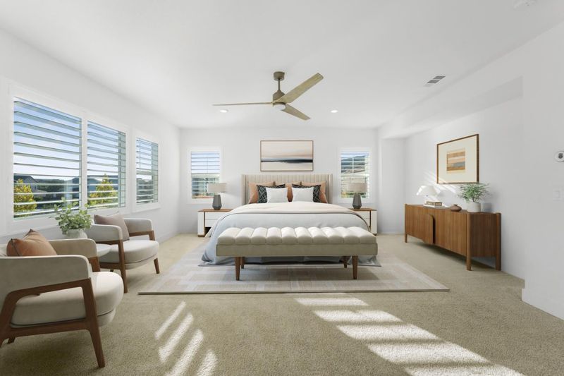 Your dream home right in time for the holidays! This home has a fantastic floor plan, breathtaking views, and is located in the highly sought after Glen Loma Ranch community. Prime cul-de-sac lot offers privacy with only one neighboring home and beautiful views from the second story. This home has 5 Bedrooms, 4.5 baths- 3 of which are ensuite, a loft, a 3-car garage and an open-concept kitchen & living room making this home is an entertainer's dream. Beautiful kitchen with island, upgraded lighting and backsplash, large pantry, double oven, gas range and extensive cabinets. It has owned solar and is prewired for electric vehicle charger. Custom plantation shutters throughout the home, an outdoor California room and large yard with grass and pavers. This home is conveniently located in the rolling western foothills of Gilroy where you will find yourself surrounded by relaxing open spaces, extensive walking trails, numerous neighborhood parks and Eagle Ridge Golf Club! Property is virtually staged.
