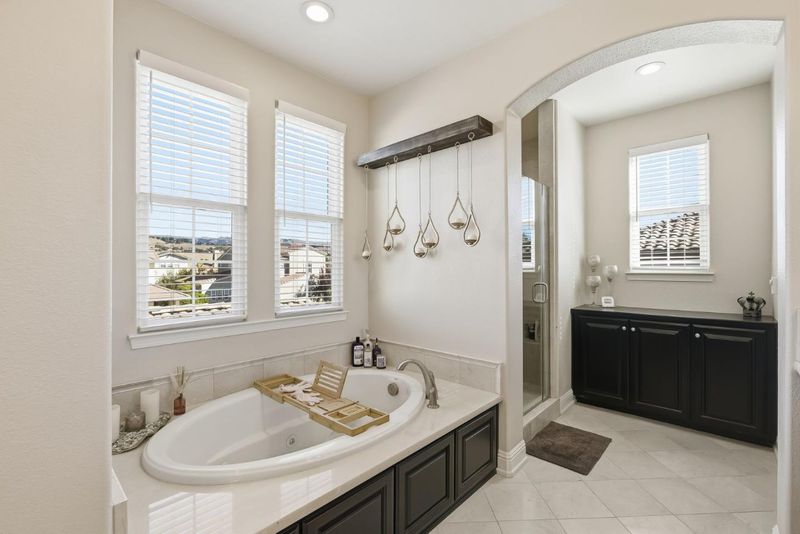 This elegant 5-bedroom, 4.5-bath home offers 3,238 sq ft of beautifully designed living space, blending luxury and functionality throughout. The inviting entry opens to spacious living and dining areas with Monarch hardwood floors and abundant natural light. The gourmet kitchen features granite countertops, stainless steel appliances, a Sub-Zero refrigerator, and a convenient butlers pantry. A downstairs bedroom with an en-suite bath is perfect for guests or multi-generational living. The luxurious primary suite includes a spa-like bathroom and a huge walk-in closet. A charming courtyard connects to the detached ADU ideal for extended family, a home office, or rental income. The expansive backyard is an entertainers dream with a covered patio, dual fireplace, built-in BBQ, and a nice-sized grass area for outdoor dining and play. Additional highlights include an oversized two-car garage wired for an EV charger, ample storage, and beautiful curb appeal. Enjoy resort-style living with HOA amenities featuring three private parks, tennis, pickleball, and basketball courts, a kids playground, and scenic walking trails.