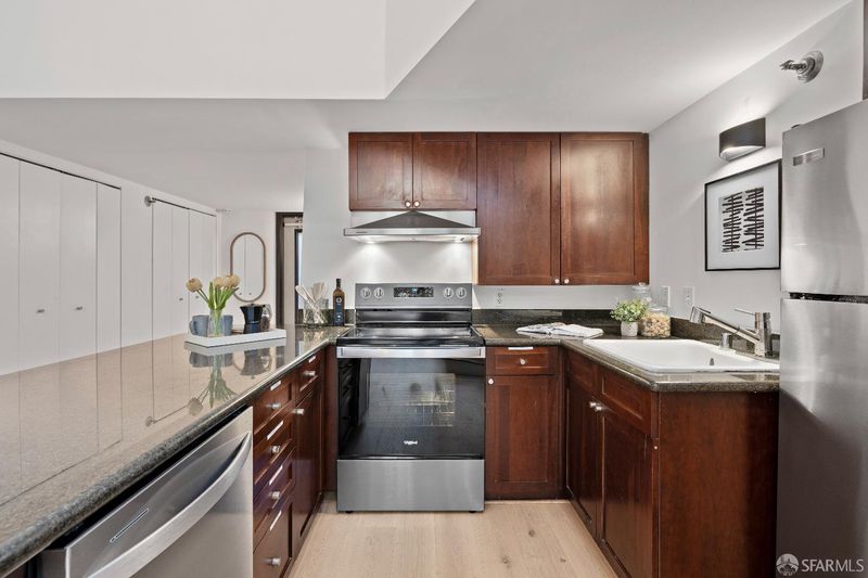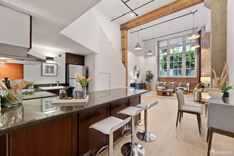 Welcome to this timeless 1BD/1BA loft in the iconic Clocktower Building, one of San Francisco's most coveted live/work warehouse conversions. Rich with character, it features exposed brick and timber, soaring ceilings, and expansive industrial windows that flood the open-concept living space with natural light. Brand new wide-plank hardwood floors enhance the airy layout, flowing seamlessly to a well-appointed kitchen with a new stove and dishwasher. The lofted bedroom overlooks a serene interior courtyard, offering a peaceful retreat. In-unit washer/dryer, generous storage, and 1 car parking provide extra convenience. The building offers a shared tranquil courtyard, a roof deck with sweeping city views, and a hall of art gallery, adding timeless charm and inspiration. Zoned for LIVE/WORK, this versatile loft is perfect as a stylish home, creative studio, or office. Steps from the Embarcadero, Oracle Park, top dining, freeway access, and leading AI tech firms, it harmoniously blends historic character with modern comfort and urban versatility.