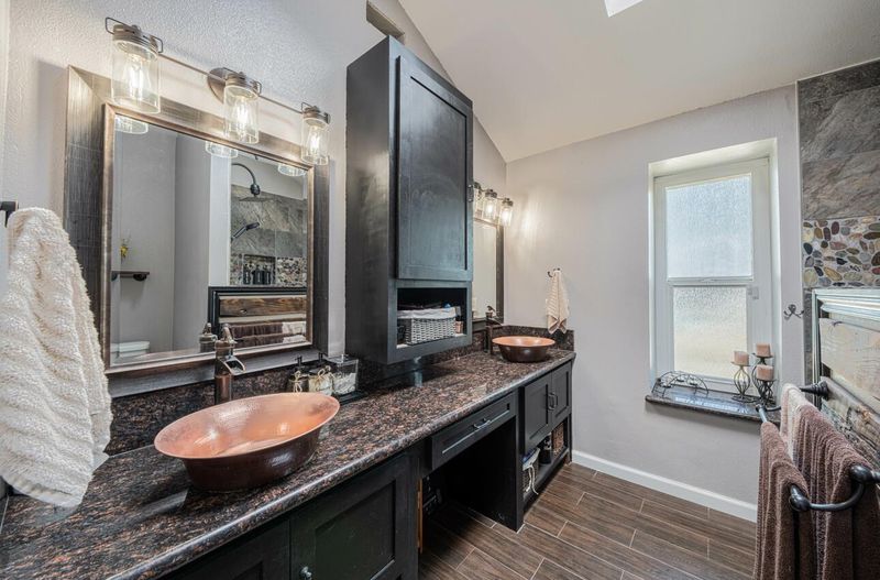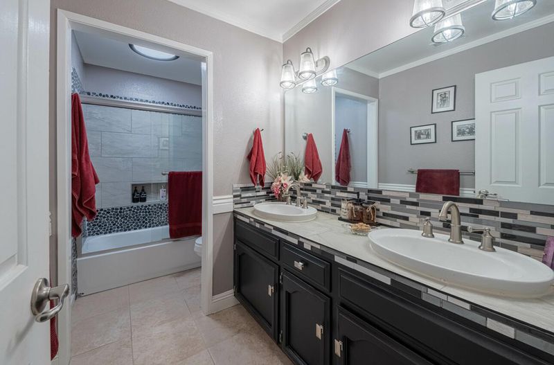 - Shower over Tub - 1, Double Sinks, Shower and Tub, Tile, Stone, Updated Bath, Primary - Stall Shower(s)