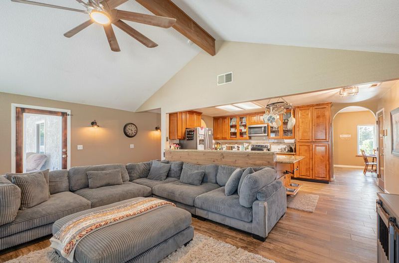 Welcome to this charming 3-bedroom, 2-bathroom (plus office) home located in the County of Madera. Spanning 2,086 square feet, this residence offers a blend of comfort and functionality. The kitchen is a culinary delight featuring modern appliances including an electric cooktop, granite countertops, a gas oven range, dishwasher, garbage disposal, ice maker, and microwave, not to mention a spacious pantry. The home boasts a mix of concrete, laminate, and tile flooring throughout, creating a seamless flow from one room to the next. Relax in the separate family room, which includes a cozy fireplace, perfect for cooler evenings. The formal dining room is ideal for entertaining guests. High ceilings enhance the open and airy feel of the home, and central AC with a whole house/attic fan ensures year-round comfort. The property also includes an in-ground pool, perfect for enjoying warm Madera days, with a Bar/BBQ area (look at pictures to appreciate) including misters here and under the patio walking out of home! Additional features are a convenient in-utility room laundry area, RV area with electrical set with 240 volt/50AMP, a "beach area" for kids already set up and a 2-car garage. This home provides a comfortable and convenient lifestyle in a thriving community. A must see!