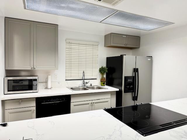 - Countertop - Quartz, Countertop - Solid Surface / Corian, Microwave, Oven Range, Refrigerator, Skylight
