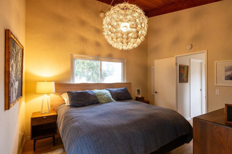 Enjoy sweeping views of Lovers Point, Moss Landing, and Santa Cruz from this light-filled contemporary home. A front balcony with modern cable railing, set beneath a mature coast live oak, creates an elegant arrival. Inside, cathedral ceilings and a sleek gas fireplace define the open main living space. The home offers three bedrooms and two updated baths, including a soaking tub and walk-in shower. The spacious primary suite accommodates a king-size bed. A lower-level guest room features a built-in queen Murphy bed with shelving, while the front bedroom is currently used as a private home theater. Ample storage, smart-home features, and modern conveniences include keyless entry, Philips Hue lighting, programmable thermostat, central gas heat, Bosch appliances, new Whirlpool refrigerator, in-home laundry, and a one-car garage. Fresh interior paint and colorful fused-glass windows by local artist Shelby Hawthorne add a refined finishing touch.