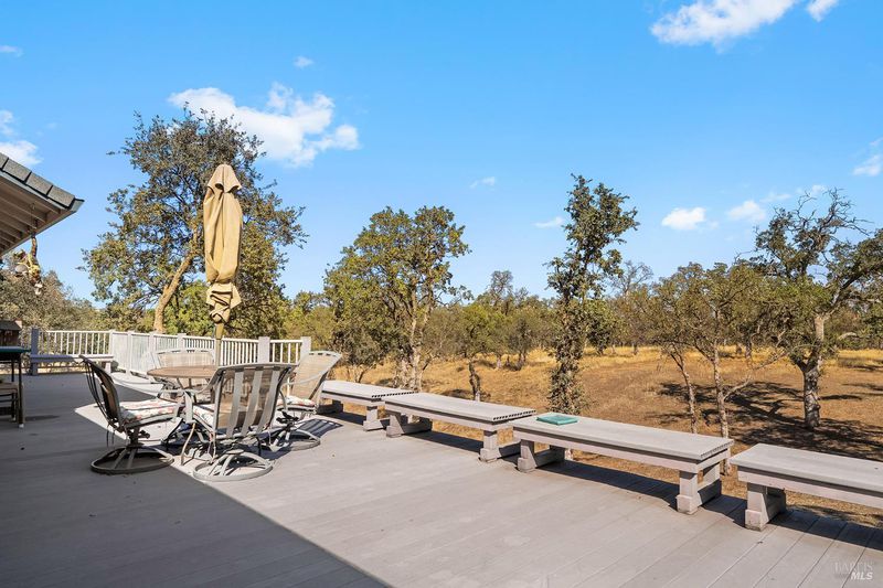 Nestled at the end of a quiet cul-de-sac on just over an acre of beautifully treed land, this single-level home offers the perfect balance of privacy, space, and comfort. A picturesque setting surrounded by mature oaks, inside, you'll find a light-filled layout with large picture windows framing serene views of the natural landscape. The open living and dining areas create an inviting atmosphere for gatherings, while the cozy family room provides a warm and relaxed space for everyday living. The well-maintained kitchen offers ample storage, and the adjacent dining area opens effortlessly to the expansive back deck perfect for outdoor dining or morning coffee among the trees. The spacious primary suite includes a soaking tub with views, dual sinks, and plenty of counter space. Two additional bedrooms and a full guest bath provide flexibility for family, guests, or a home office. Outside, the expansive deck stretches along the back of the home, offering generous space for outdoor dining and relaxation.There's plenty of room to garden, play, or simply unwind. A new roof and solar system complete with battery backup and EV car charger provide modern efficiency and underground utilities - meaning no overhead power lines, clearer view and enhanced reliability.