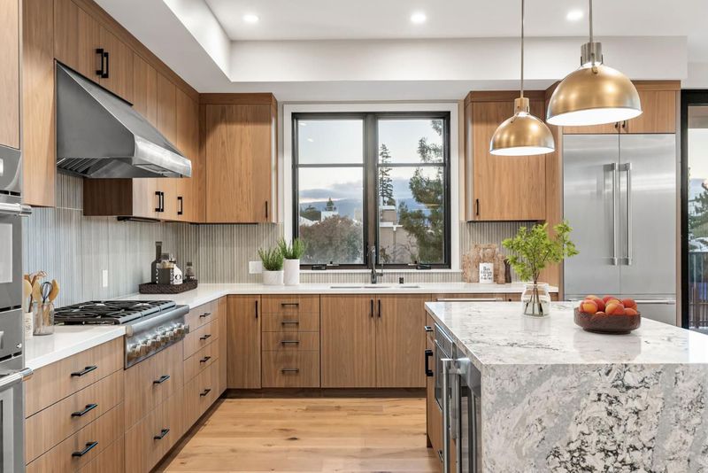 - Dishwasher, Exhaust Fan, Garbage Disposal, Hood Over Range, Island, Microwave, Oven Range - Gas, Pantry, Refrigerator, Wine Refrigerator