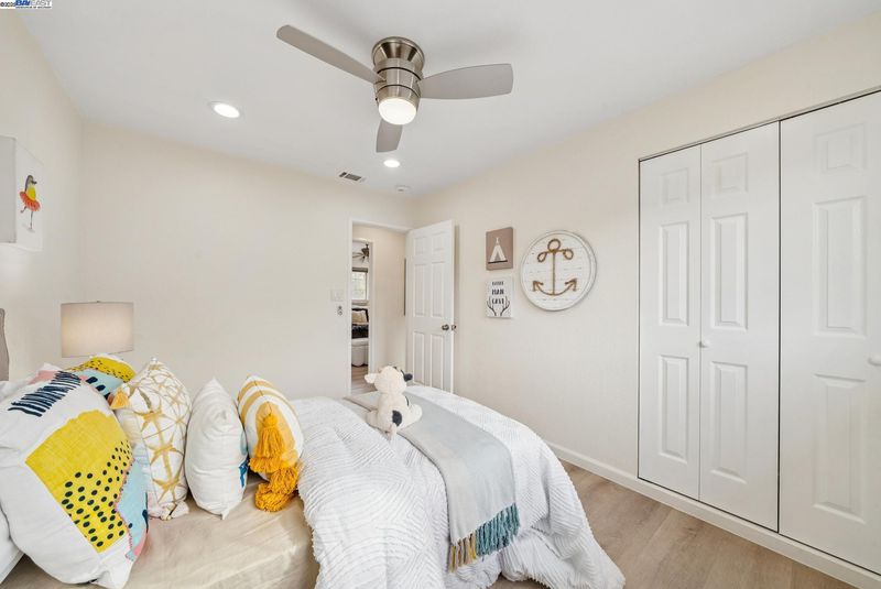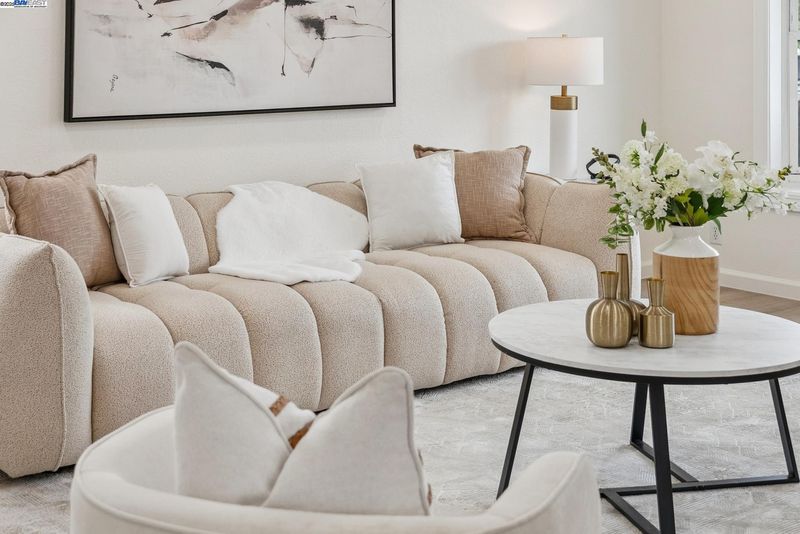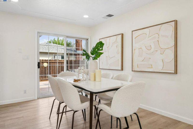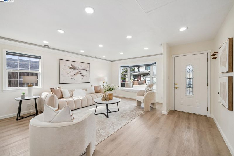 Pristine NORTHWEST facing home with beautiful upgrades! This light-filled residence boasts an open-concept design which blends style, function, and comfort in one. The heart of the home is the brand-new gourmet kitchen featuring sleek stainless-steel appliances, modern cabinetry, and elegant finishes that flow seamlessly into the spacious family room—perfect for both everyday living and entertaining. Both bathrooms have been tastefully upgraded, and every detail of this home has been thoughtfully curated, from new honeycomb blinds on all windows to smart switches and recessed lighting throughout. Enjoy year-round comfort with a complete HVAC upgrade—including a new furnace, new A/C, ductwork, and smart thermostat. Copper plumbing throughout. Step outside to a spacious, professionally landscaped backyard featuring stamped concrete and plenty of room to relax or entertain. The flex space in the yard is perfect for a home office or creative studio, complete with new flooring and paint. The epoxy-finished garage floor adds the final touch of polish and practicality. Easy access to 880, Dumbarton Bridge, 237, BART, and major tech hubs. You don't want to miss this!