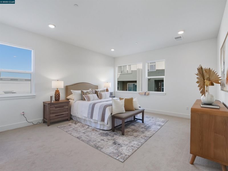 Move-in Ready! Victoria Station at Metro West brings new luxury condos and convenience to your doorstep with access to neighborhood retail, community park and clubhouse. Open-concept, great room and casual dining area are adjacent to a sizable office and access to outdoor covered balcony. Kitchen highlighted by a large center island, breakfast bar, plenty of counter and cabinet space, KitchenAid stainless steel appliances, and ample walk-in pantry. Expansive primary bedroom suite is complemented by dual walk-in closets, designer sliding barn door to the primary bath complete with a dual-sink vanity, a spa-like shower with seat. Laundry room with Whirlpool front load washer and dryer. This intimate 15 home condominium has a roof top deck with bar-b-que, fire pit, and seating area to enjoy with family and friends. Exclusive to this community the comforts of a movie screening room, dog washing station, shared office work space, and entertainment kitchen area. Toll Brothers Newest Community in the sought after area of Fremont's Innovation District!! Great commute location with easy access to 680 and 880 as well as walking distance to BART. Close to the 'High Tech' industry and great schools. ( photos not of actual home, for marketing only)