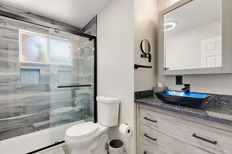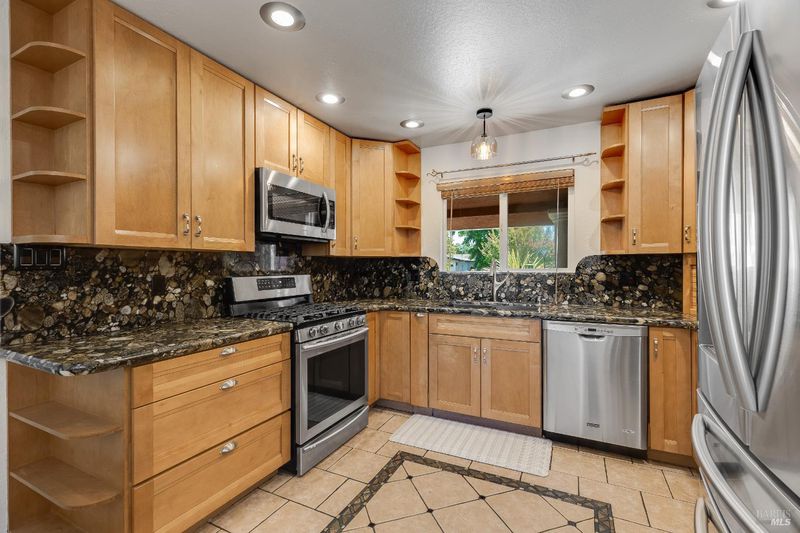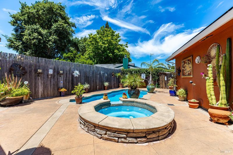 Entertainer's Dream Home in Prime Napa Location! This stunning single-story, three-bedroom, two-bath home is designed for both comfort and entertaining. The custom-remodeled kitchen and bathrooms feature high-end finishes and elegant tile work. The expansive primary suite boasts a huge walk-in closet and a luxurious en-suite with an oversized walk-in shower. The spacious dining area, complete with a built-in bar and mini fridge, is perfect for hosting. Step outside to a private backyard oasis featuring a heated pool, spa, and dedicated dog run. Two fireplaces add warmth inside, while paid solar provides energy efficiency. Two garages offer ample parking and storage, with the second garage ideal as a workshop or creative space. A large pantry offers great storage, and fresh interior paint gives the home a crisp, updated feel. Located minutes from the Bel Aire Shopping Center home to Whole Foods, Target, and Trader Joe's and with easy access to Highway 29, this home is perfectly situated to enjoy the best of Napa. Walking distance to schools. Don't miss this incredible opportunity!
