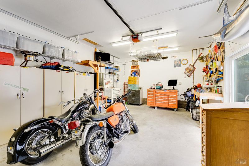 - Attached, Garage Door Opener, Garage Facing Front, Garage Facing Side, Interior Access, Workshop in Garage