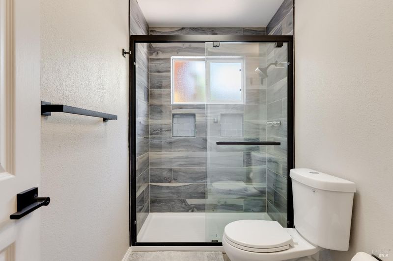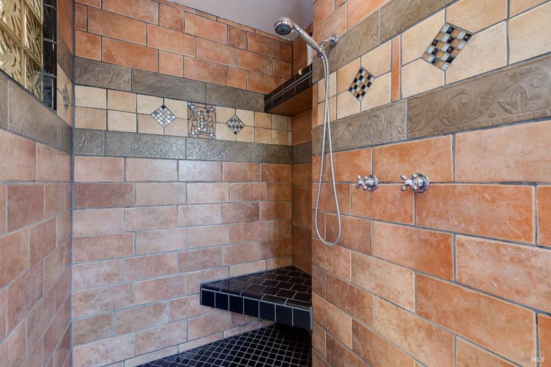 - Multiple Shower Heads, Shower Stall(s), Tile, Window