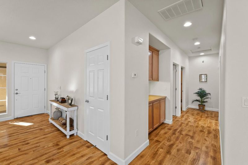 Perfect for seniors who desire a quiet, single-story home with low maintenance living and comfortable amenities. This single-story 2 bedroom, 2 bathroom residence is located in a peaceful, tree-lined senior complex for ages 62 and older. Designed for comfort and convenience, the home features a spacious living room with fireplace, ceiling fan and laminate flooring. The kitchen offers a gas stove, tile floors, and easy-care finishes. The private primary suite includes a large bedroom, dual sink vanity, and a walk-in shower. The guest bathroom also includes a step-in shower for effortless access. A hall closet houses an interior laundry area for added convenience. Enjoy the outdoors with a charming patio, side concrete area great for container gardening or outdoor dining and direct access to an attached 2-car garage. HOA features sparkling pool for an additional fee.