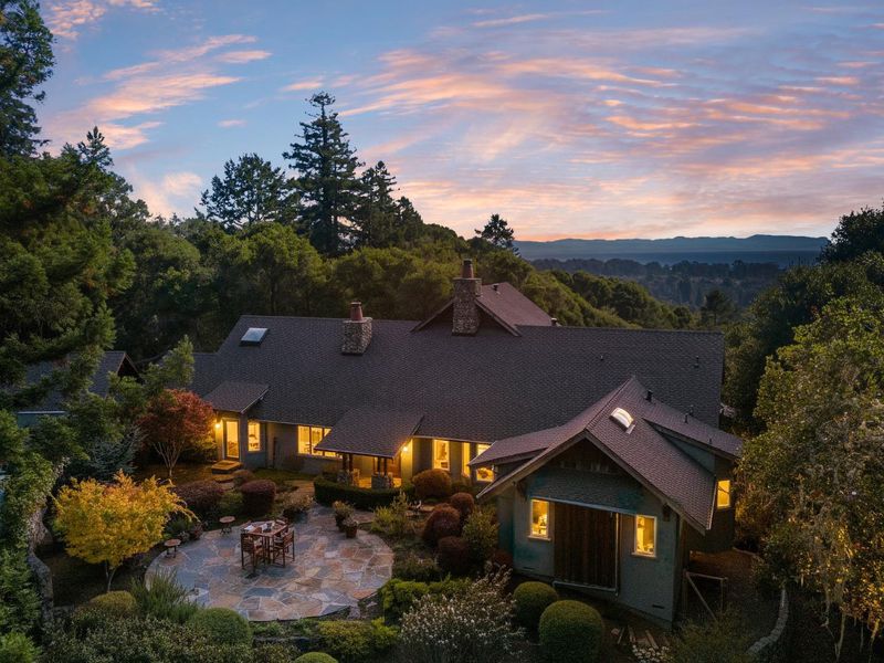 Designed by renowned Thacher & Thompson Architects, this custom home harmonizes with its surroundings, showcasing breathtaking ocean views from nearly every room. The private road, gated entry, and surrounding oak and redwood trees create a private, serene retreat with almost daily sightings of wildlife. Despite feeling away from it all, the home is just 3 minutes from Aptos Village and only 6 minutes from the beach, offering easy access to restaurants, shopping and the coast. The home itself feels warm and inviting, though refined at the same time. Spacious rooms, high quality materials, and expansive windows are found throughout. The well thought out floorplan features a library, family room, two decks, and two ensuite bedrooms on the main level. Upstairs the almost 900 sq ft primary suite is a true haven, complete a private enclosed sunroom, luxurious bathroom with dual closets, an oversized tub and shower, all highlighting the ocean view. Additional amenities include a finished 3 car garage, ample guest parking and a generator. Cherished by only two families since its construction, this remarkable home is ready to become your sanctuary. Seller financing possible.